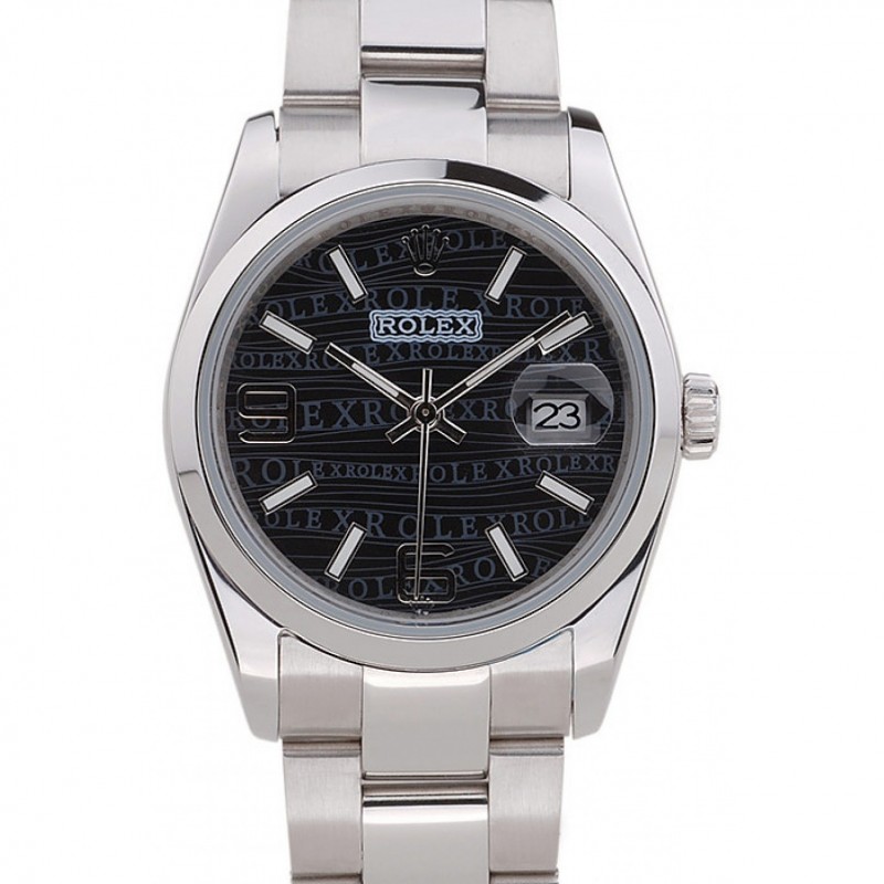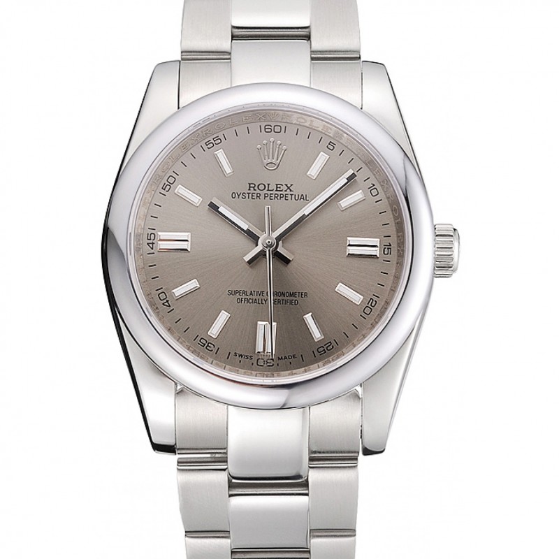 Rolex Oyster Perpetual Dial Noir Rhodium Boîtier en acier inoxydable et le bracelet