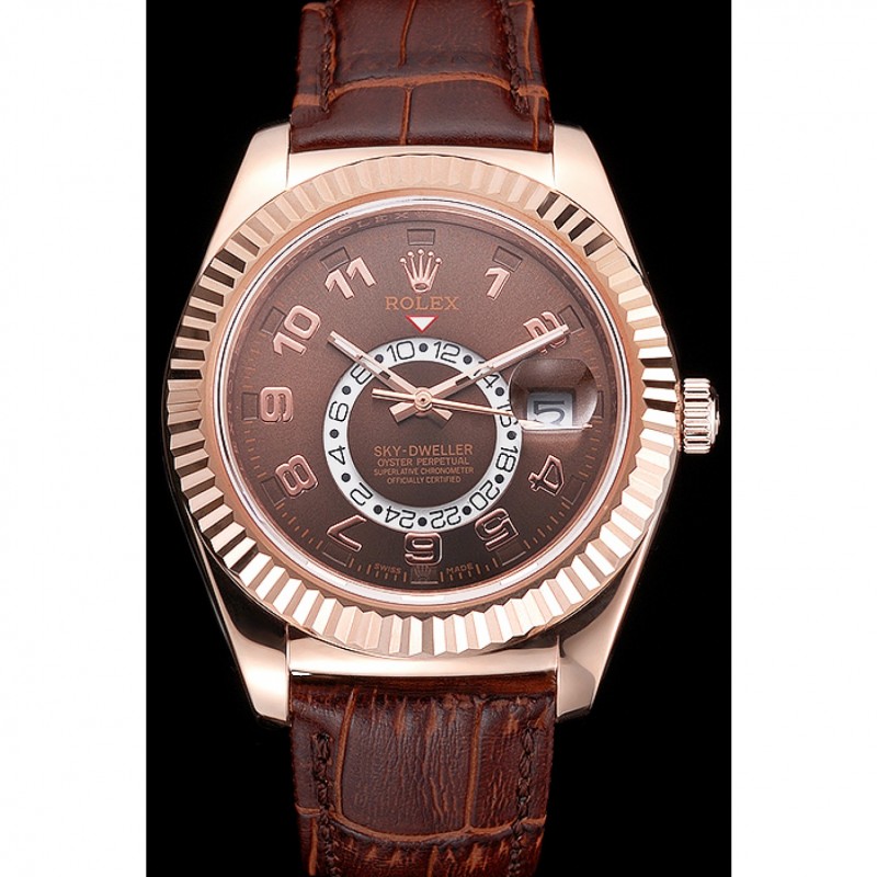 Rolex Sky Dweller cadran brun or rose bracelet en cuir brun