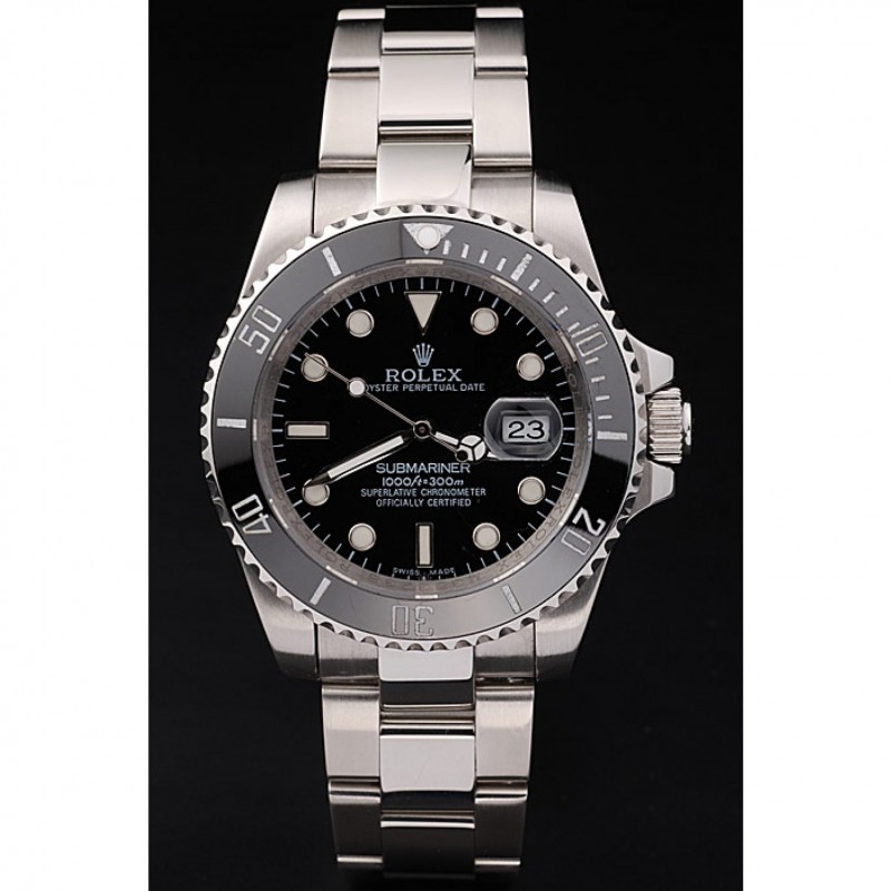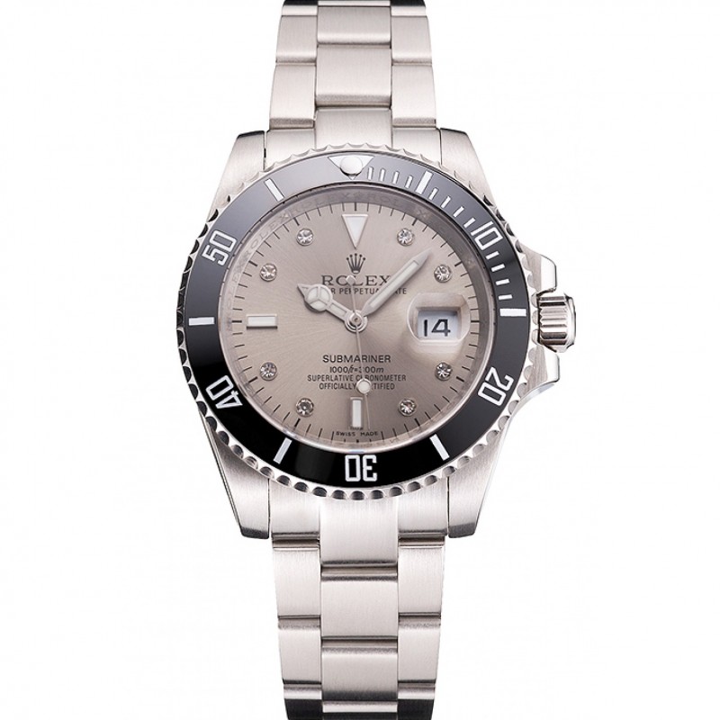 Haute qualité Replique Montre Swiss Rolex Submariner Cadran Argent Diamant Noir Lunette Marquages inoxydable Boîtier et bracelet acier