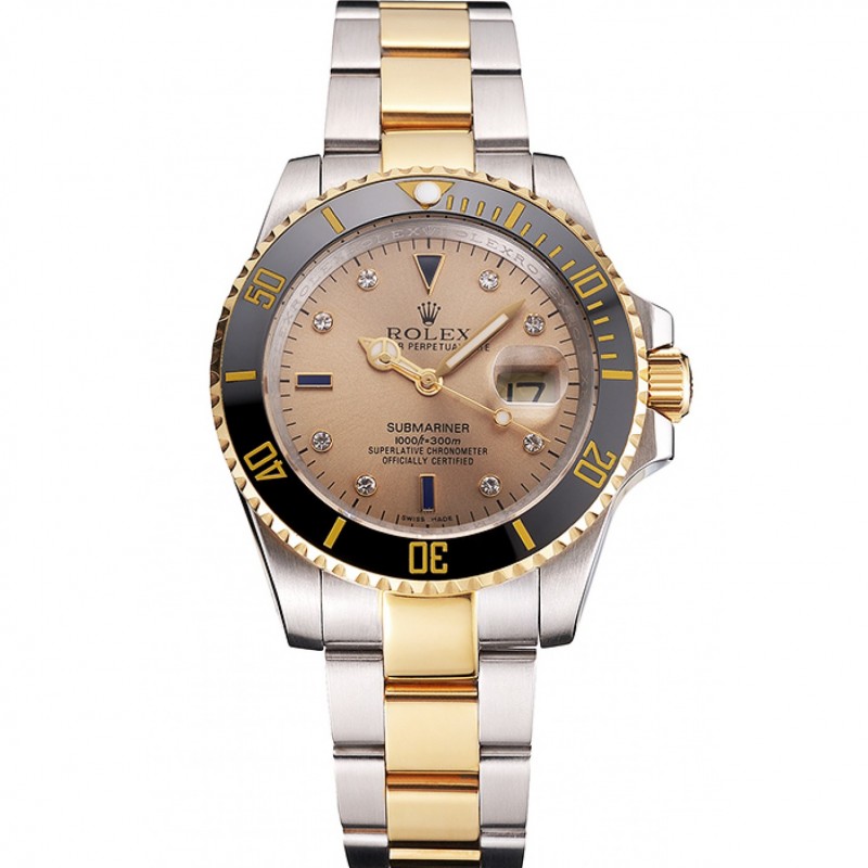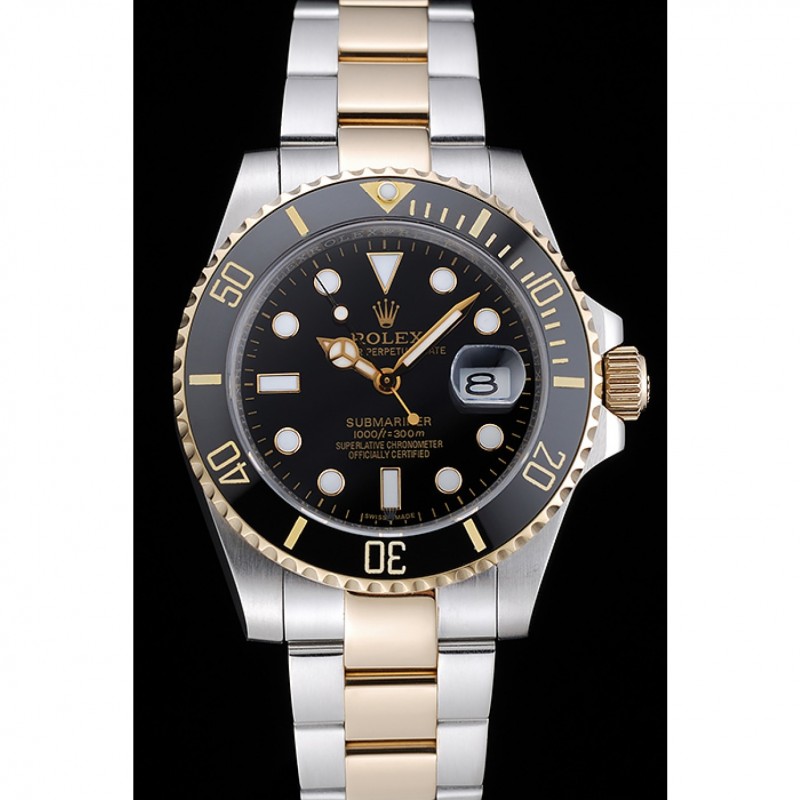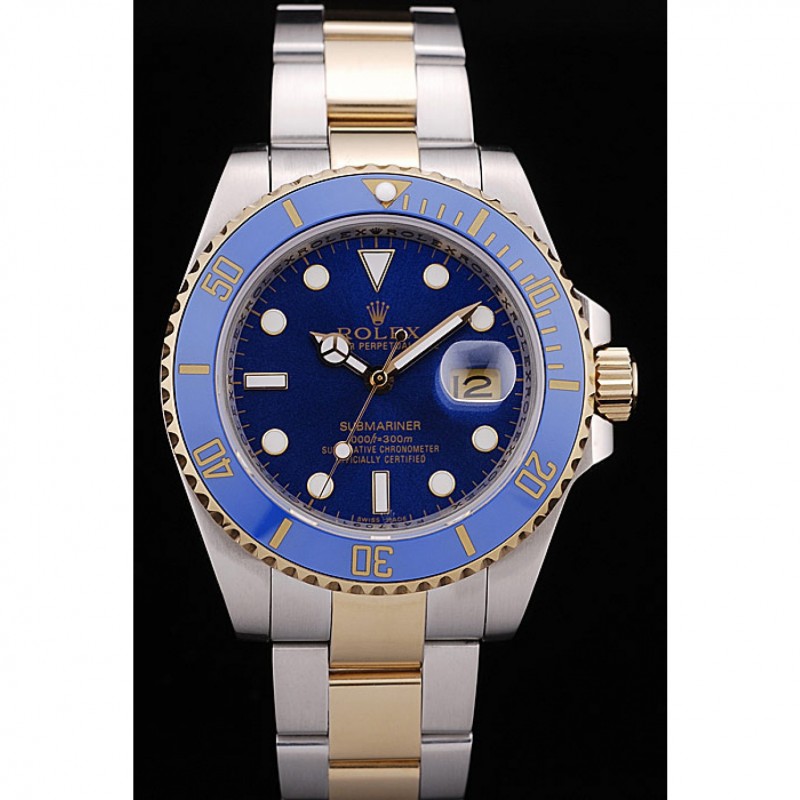 Swiss Rolex Submariner cadran bleu et lunette en acier Deux médailles d’or ton Bracelet