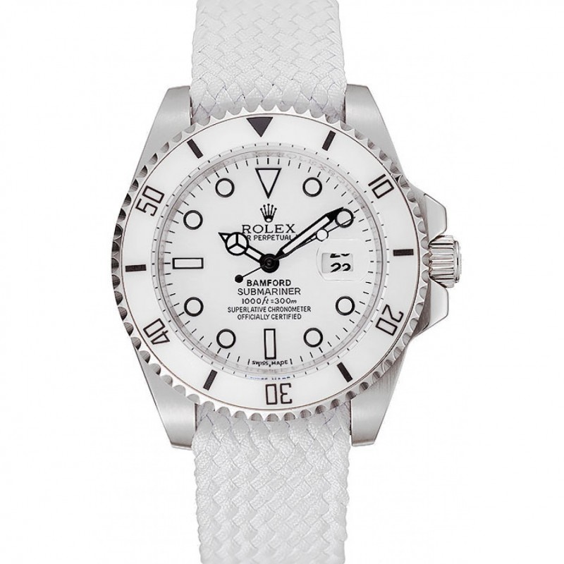 Haute qualité Rolex Submariner Bamford Cadran Blanc Bracelet blanc Tissu 1453867