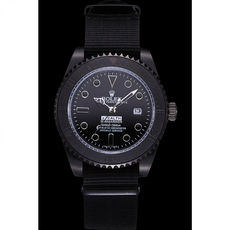 Luxe Rolex Submariner suisse Pro-Hunter Noir Bracelet Tissu Noir Cadran