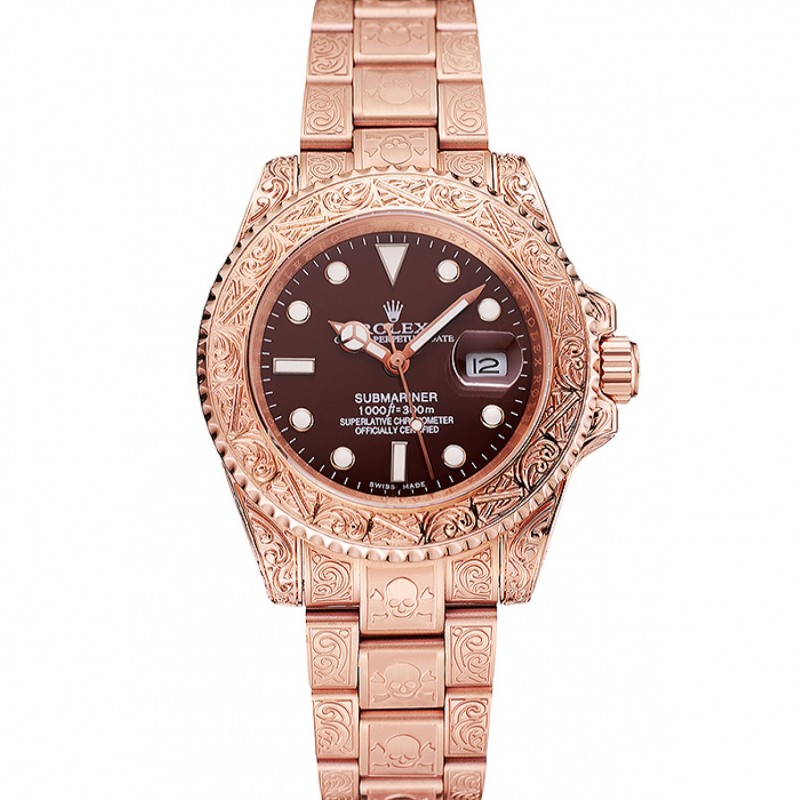 AAA Replique Montre Swiss Rolex Submariner Skull Limited Edition Brown Dial or rose et bracelet 1454087