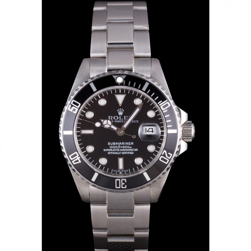 Swiss Rolex Submariner SMALL Date de cadran noir et lunette Boîtier en acier inoxydable et le bracelet
