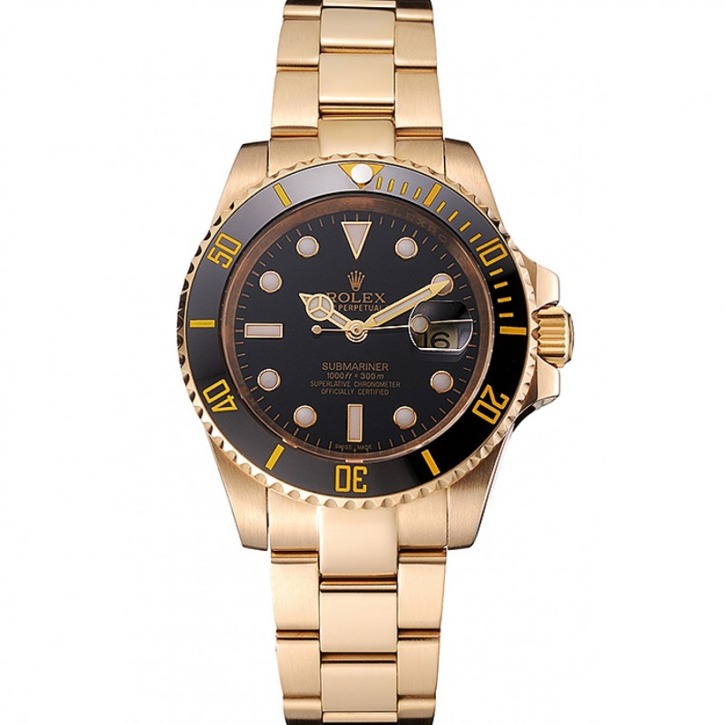 Swiss Rolex Submariner Cadran Noir Noir Lunette or jaune boîtier et le bracelet
