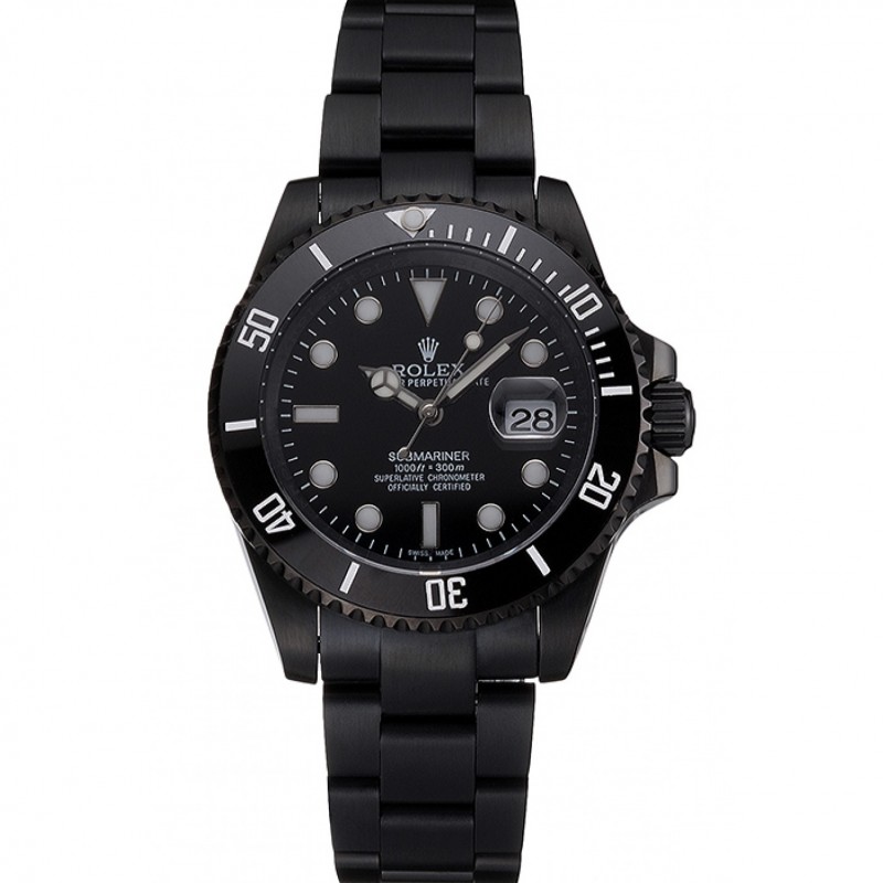 Swiss Rolex Submariner Date cadran noir et lunette noire PVD boîtier et le bracelet