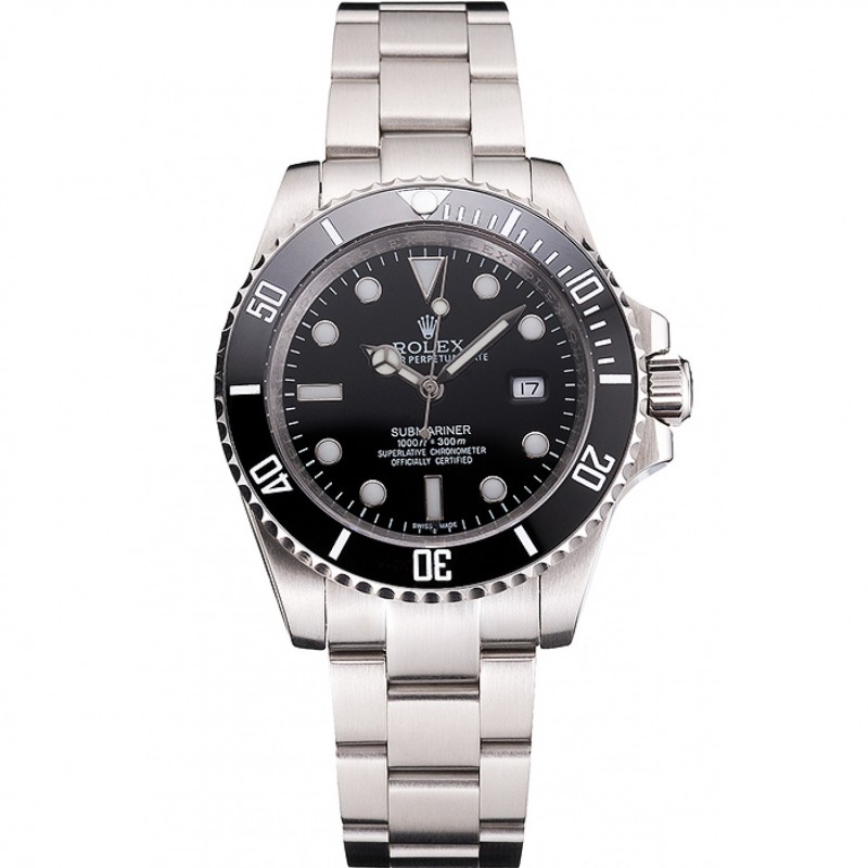 Swiss Rolex Submariner Non Date de cadran noir et lunette Boîtier et bracelet en acier inoxydable