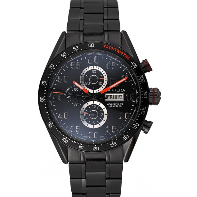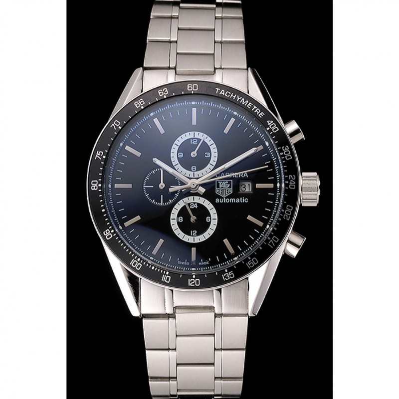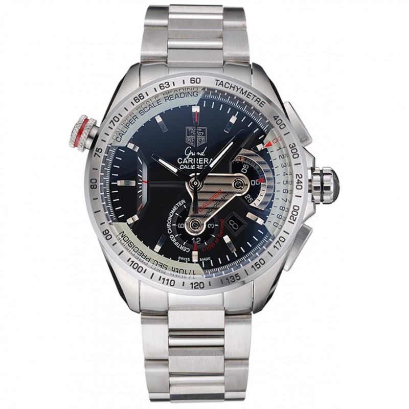 Meilleur Replique Montre Tag Heuer Carrera Suisse Tachymeter Lunette en acier inoxydable à cadran noir