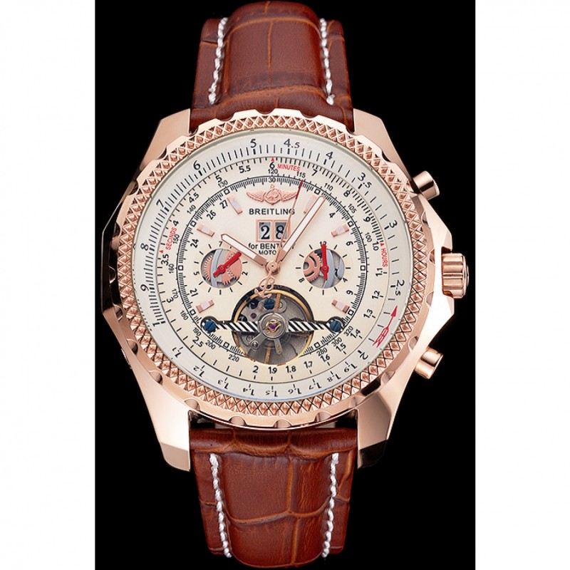 Breitling Bentley Mulliner Tourbillon Cadran Blanc boîtier en or rose bracelet en cuir brun