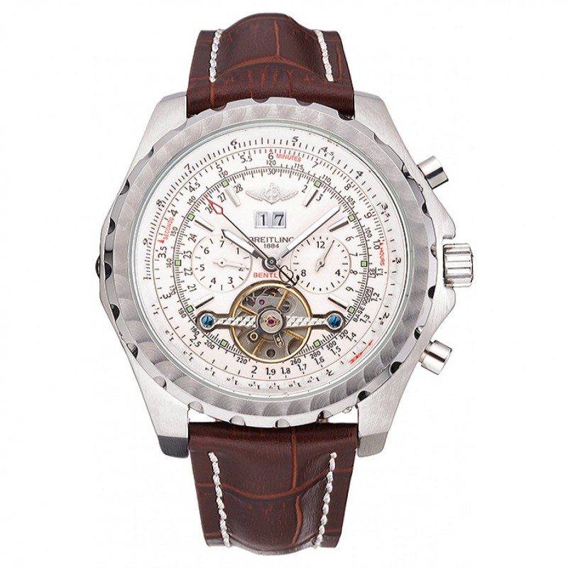 Breitling Bentley Mulliner Tourbillon Cadran Blanc Acier inoxydable bracelet en cuir brun 622729