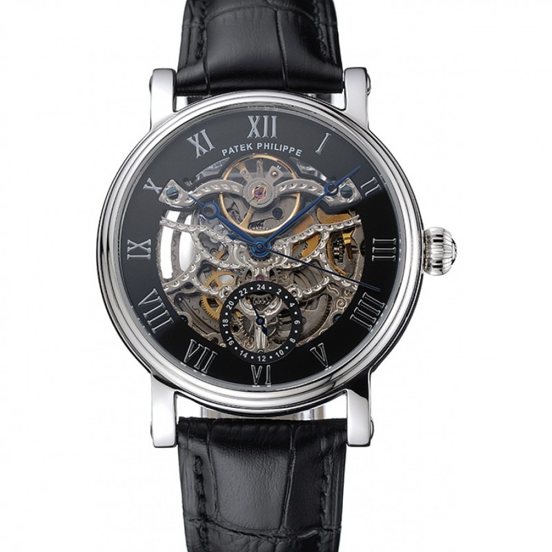 Patek Philippe Grand Complications Noir Skeleton Dial cuir noir Boîtier en acier inoxydable Bracelet 1453812
