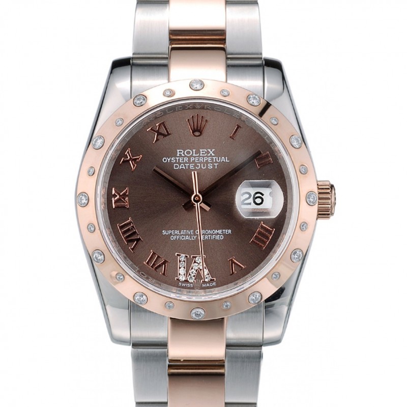 Rolex Datejust de cas en acier inoxydable brossé cadran brun diamant plaqué 41994
