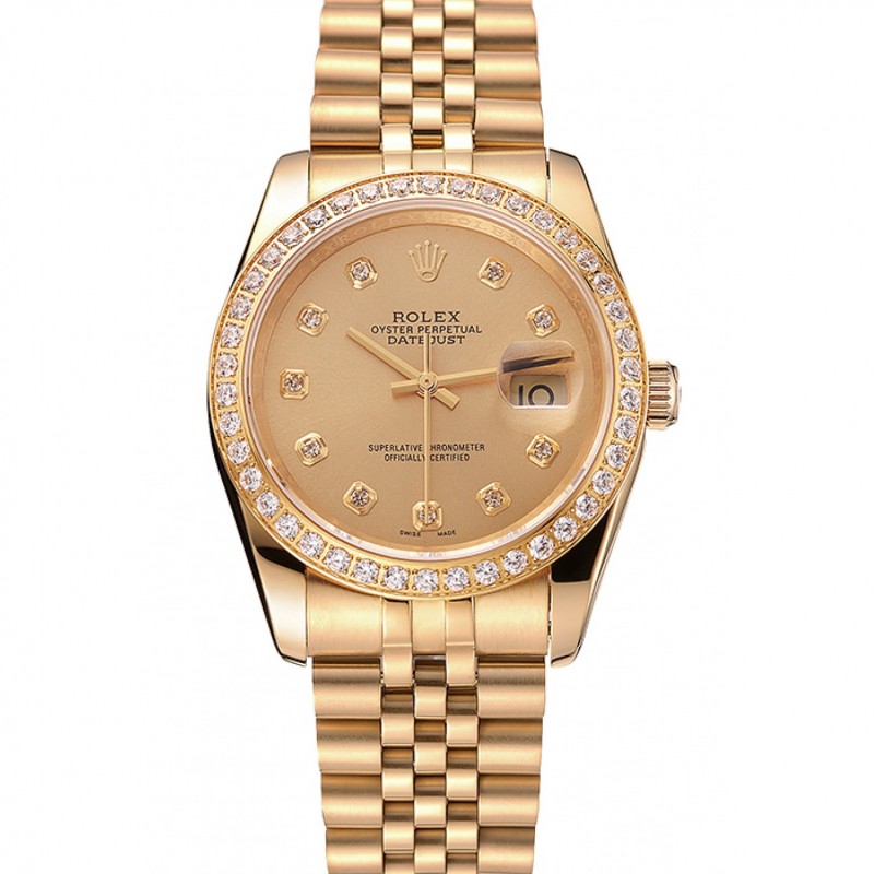 Haut Gamme Rolex Datejust or jaune 18 carats plaqué diamant en acier inoxydable plaqué 98076