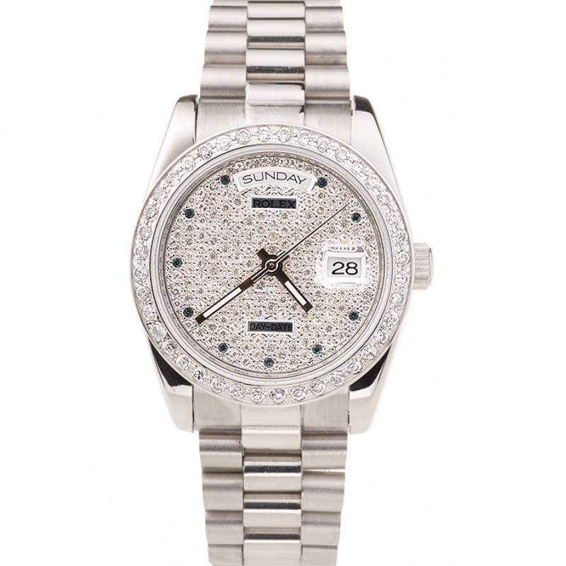AAA Swiss Rolex Day-Date Pave Dial Bracelet diamant or diamant 1453956