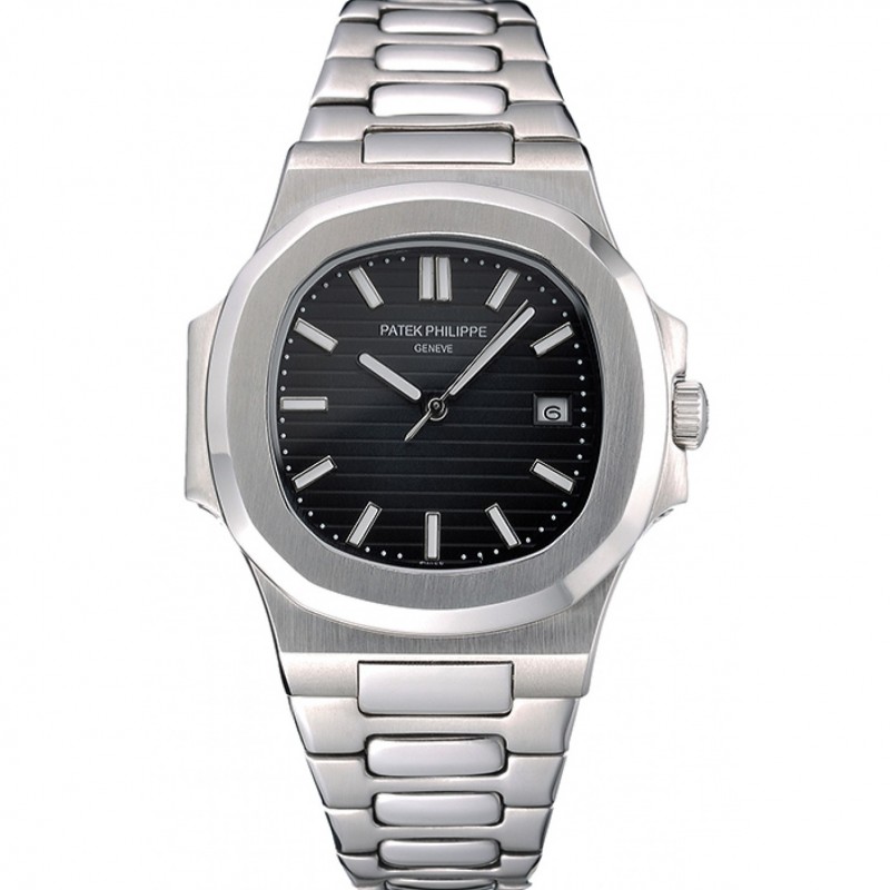Pas Cher Patek Philippe Nautilus cadran noir Boîtier en acier inoxydable et le bracelet