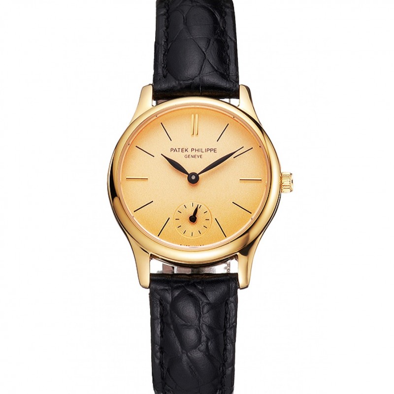 AAA Patek Philippe Calatrava cadran en or et étui boîtier en or Bracelet en cuir noir