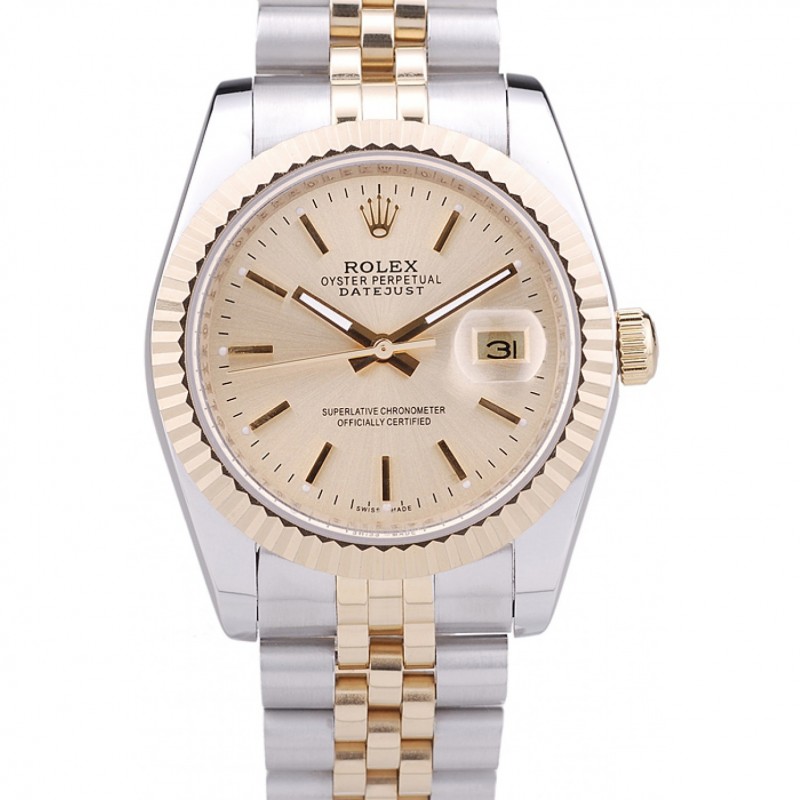 Swiss Rolex Datejust or Cadran en or Bezel Boîtier en acier inoxydable Bracelet Deux Tone