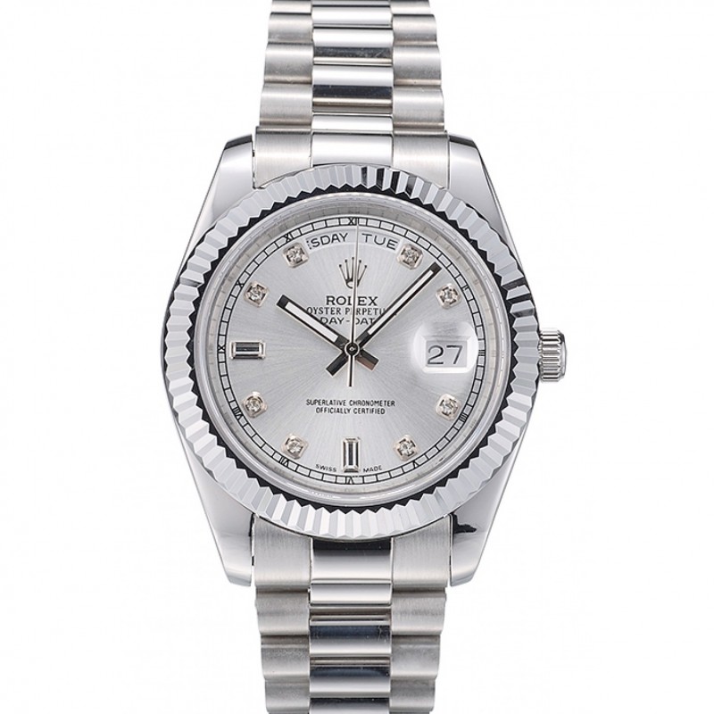 Nervuré Rolex Swiss DayDate Lunette en acier inoxydable Cadran Argent 41995