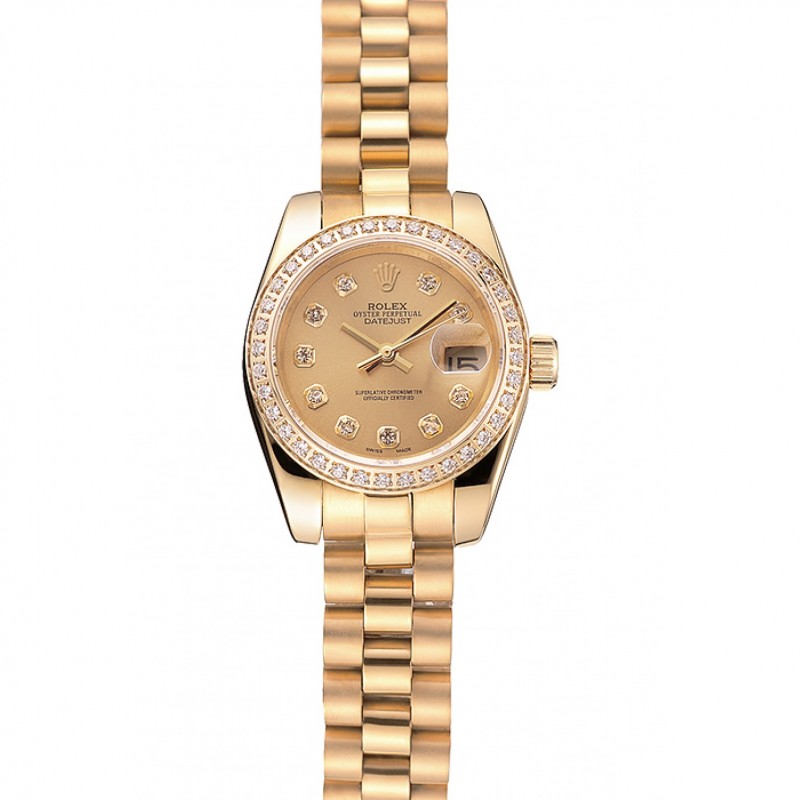 Luxe Swiss Rolex Lady-Datejust Cadran Champagne Diamond Bezel Bracelet en or 1454095