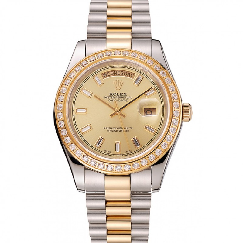 Day-Date Rolex suisse cadran blanc diamant d’or de cas de deux tons Bracelet en acier inoxydable 1453971
