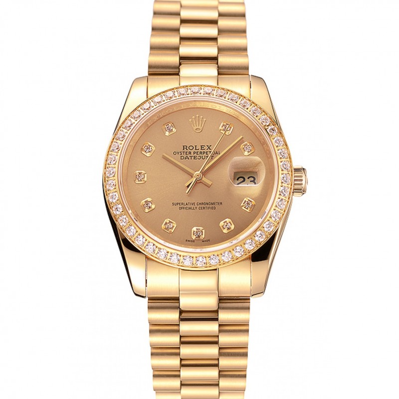 Swiss Rolex Datejust Cadran Champagne Diamond Bezel Bracelet en or 1454097