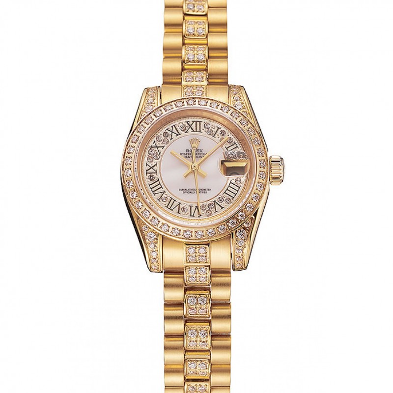 Swiss Rolex DayJust diamants en or cadran blanc Pave Bracelet 1453957