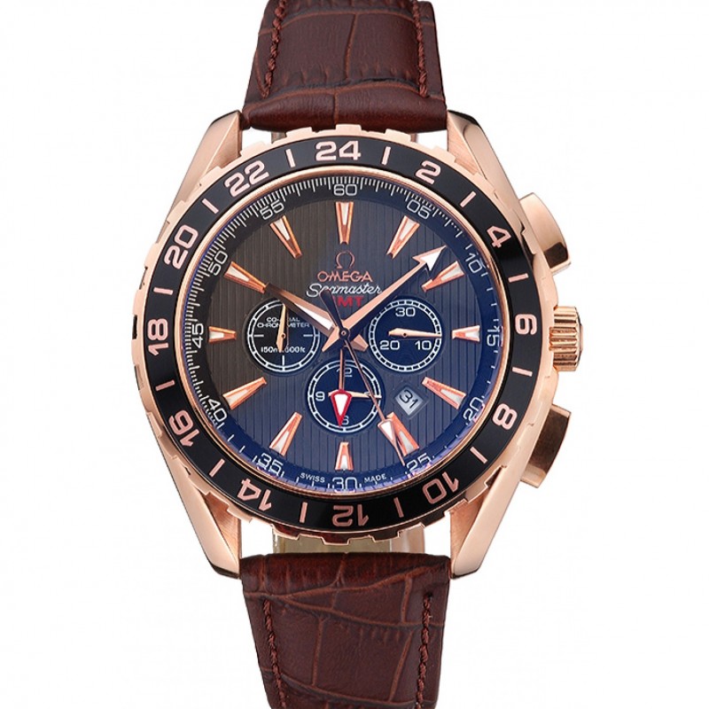 Omega Seamaster Aqua Terra GMT Chrono Teck-gris cadran brun Bracelet en cuir 622536