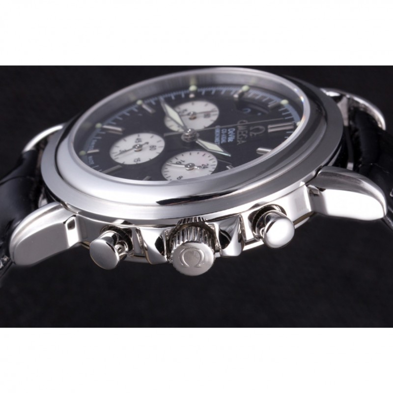 Couronne:couronne en acier inoxydable cutwork poli avec logo Omega et deux couronnes supplémentaires, une de chaque côté de celui-ci