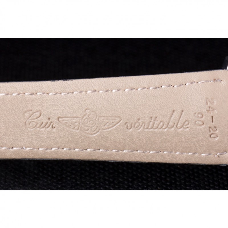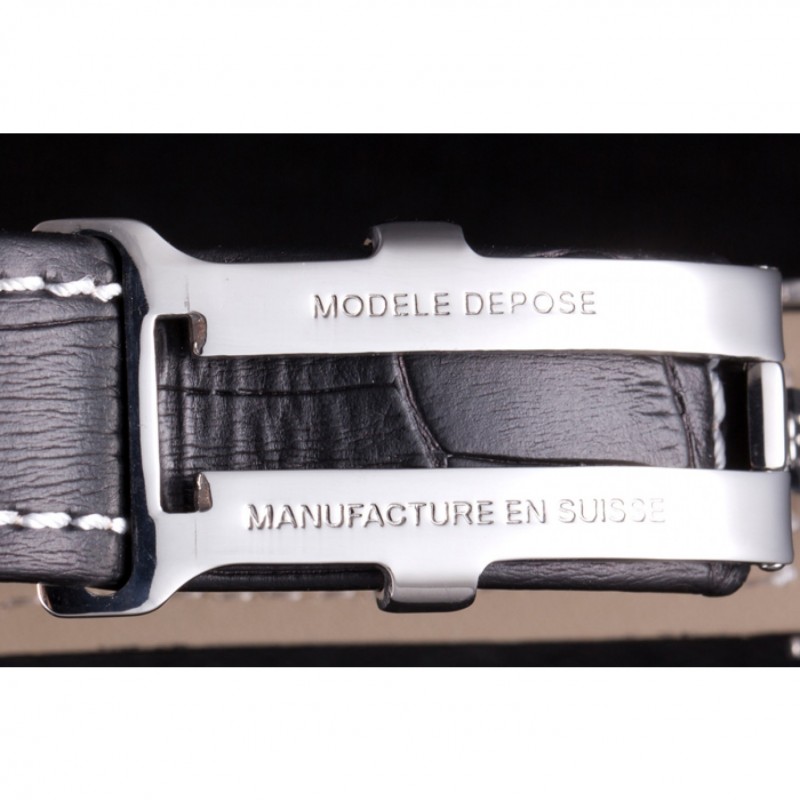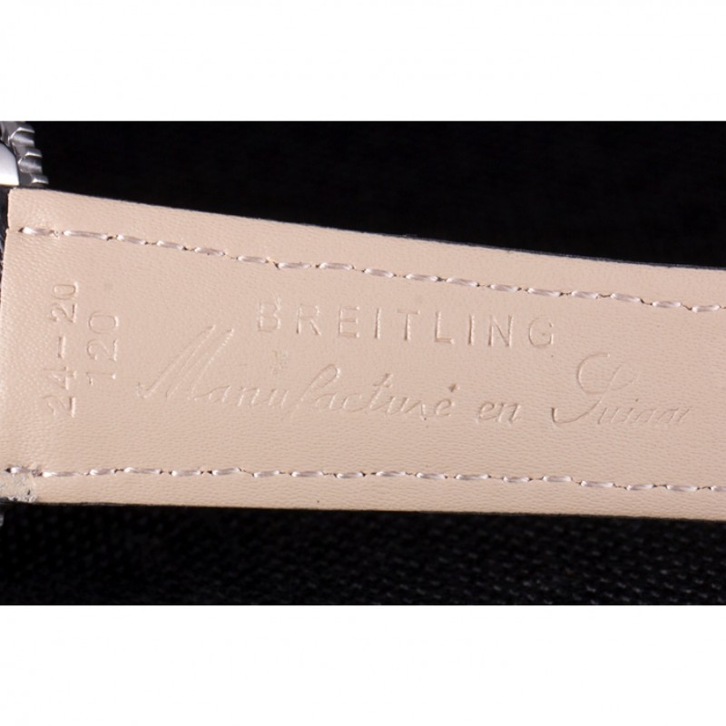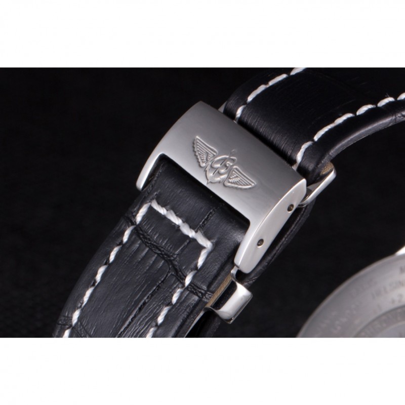 Bracelet:Noir bracelet en cuir de crocodile avec coutures blanches de brevet et de la chaleur embossé gravures Breitling et gravé fois en acier inoxydable en boucle avec le logo Breitling sur