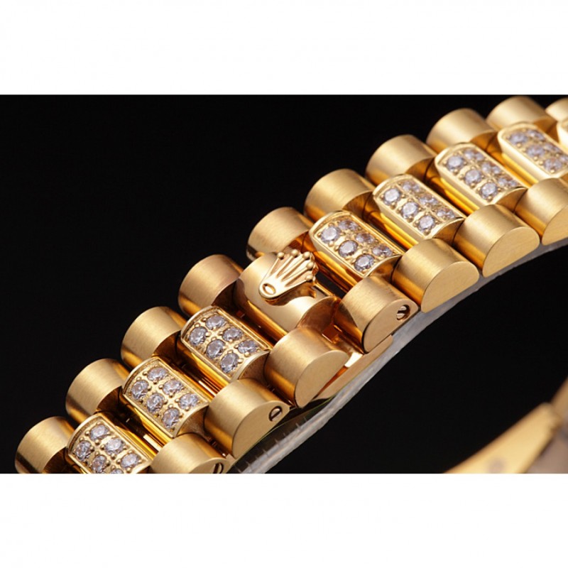 Bracelet:Diamond incrustée or jaune 18 carats plaqué bracelet lien avec cutwork Rolex boucle déployante logo