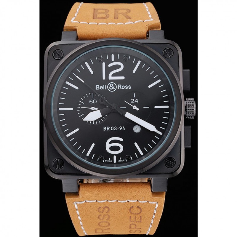 Bell et Ross BR 03-94 Cadran Noir Noir Beige cas de bracelet en cuir