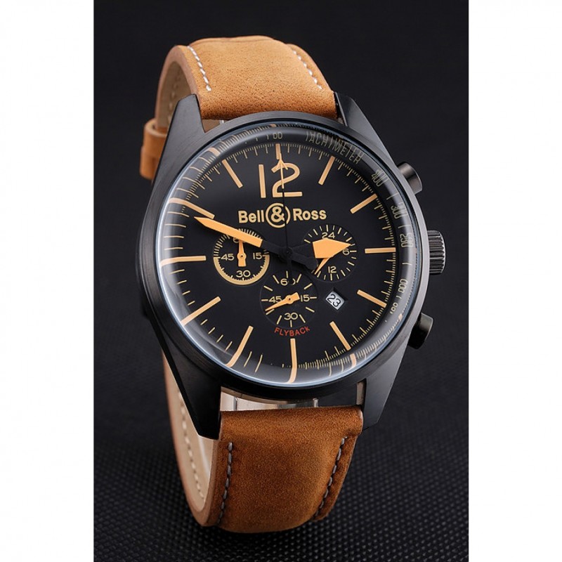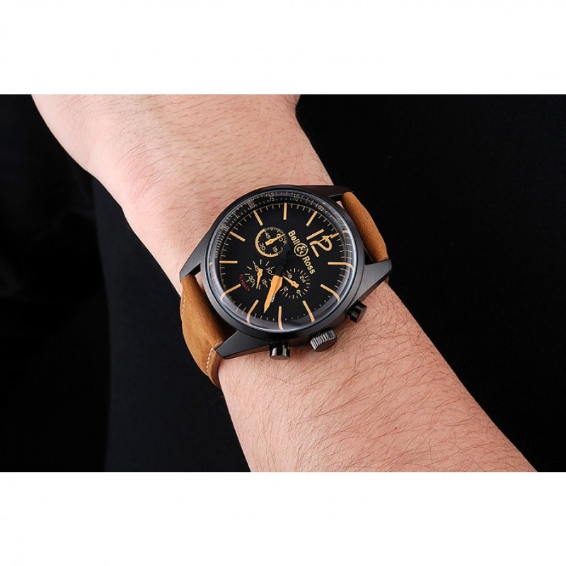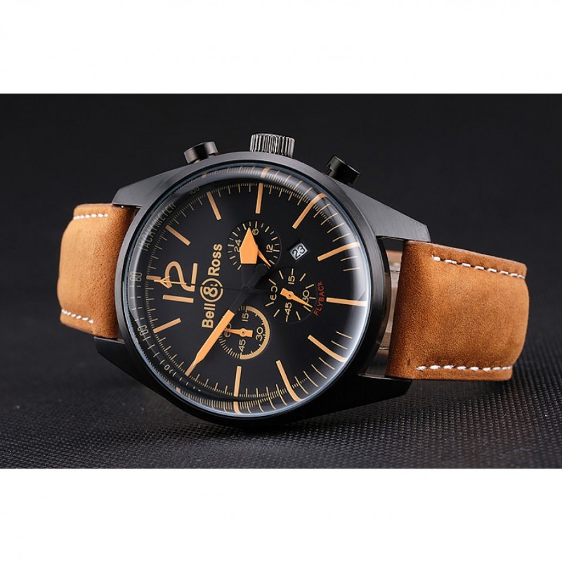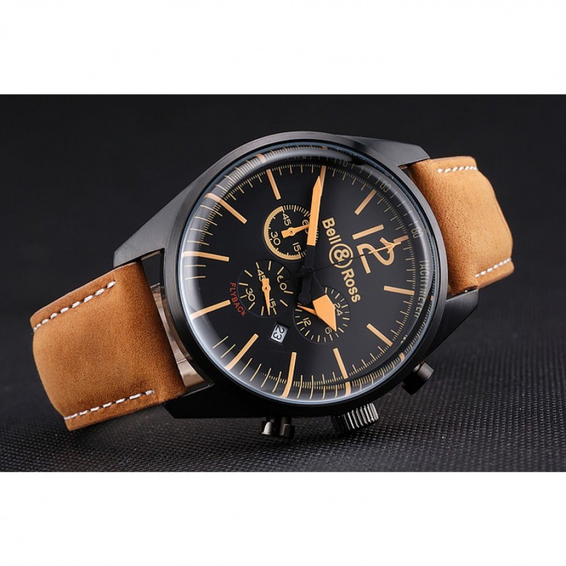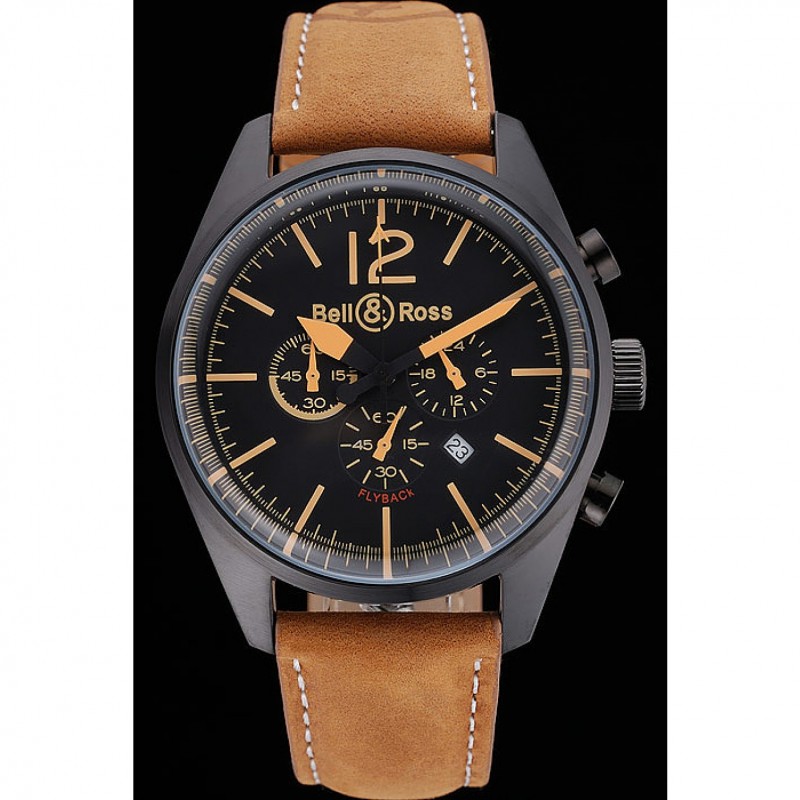 Bell et Ross BR126 Flyback Cadran Noir Noir boîtier en or Brown Suede Numerals Bracelet en cuir