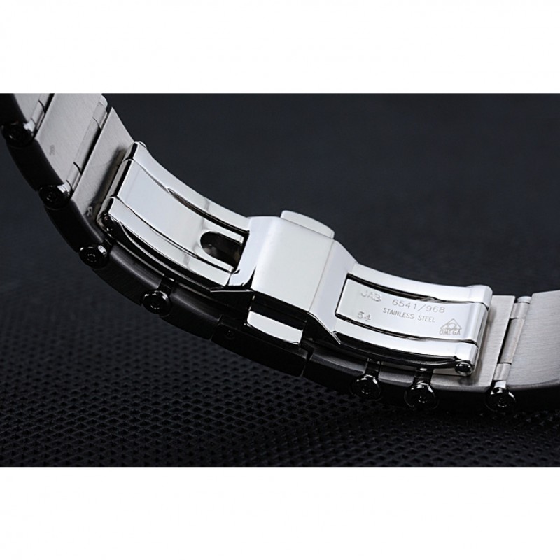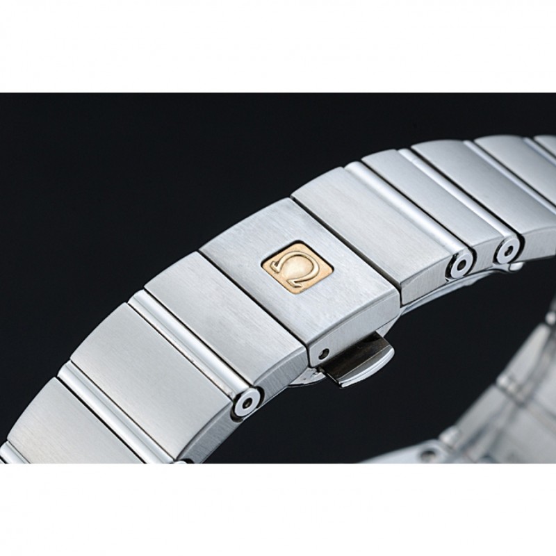 bracelet:brossé et poli bracelet à maillons en acier inoxydable avec or rose plaqué Omega logo bouton libération fermoir caché