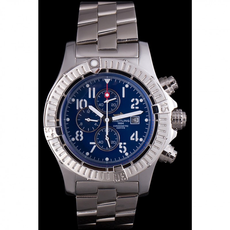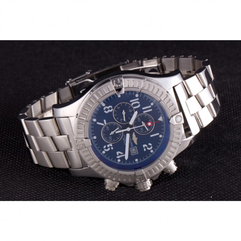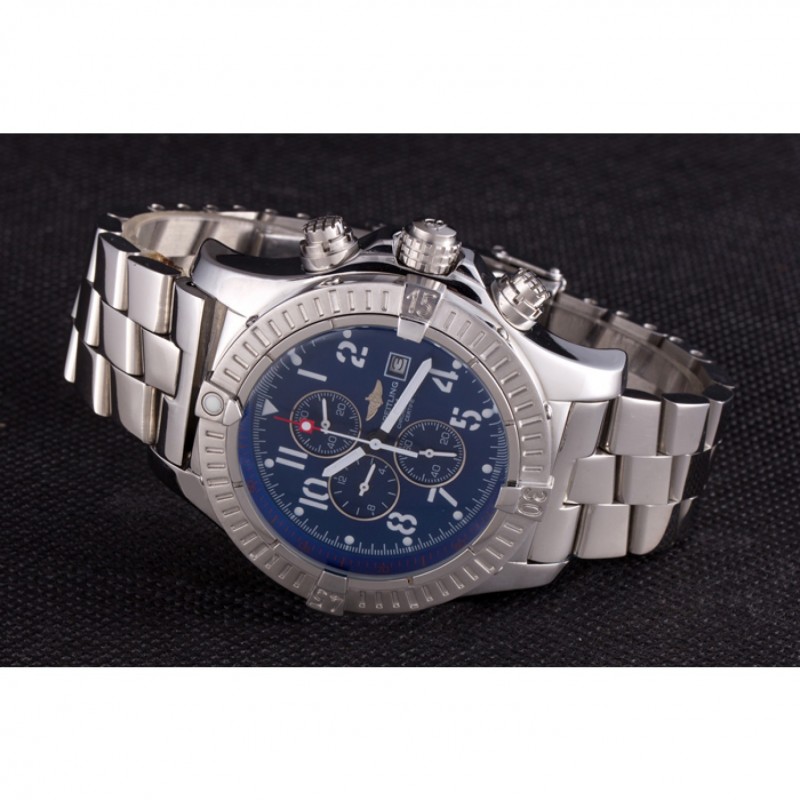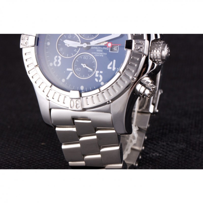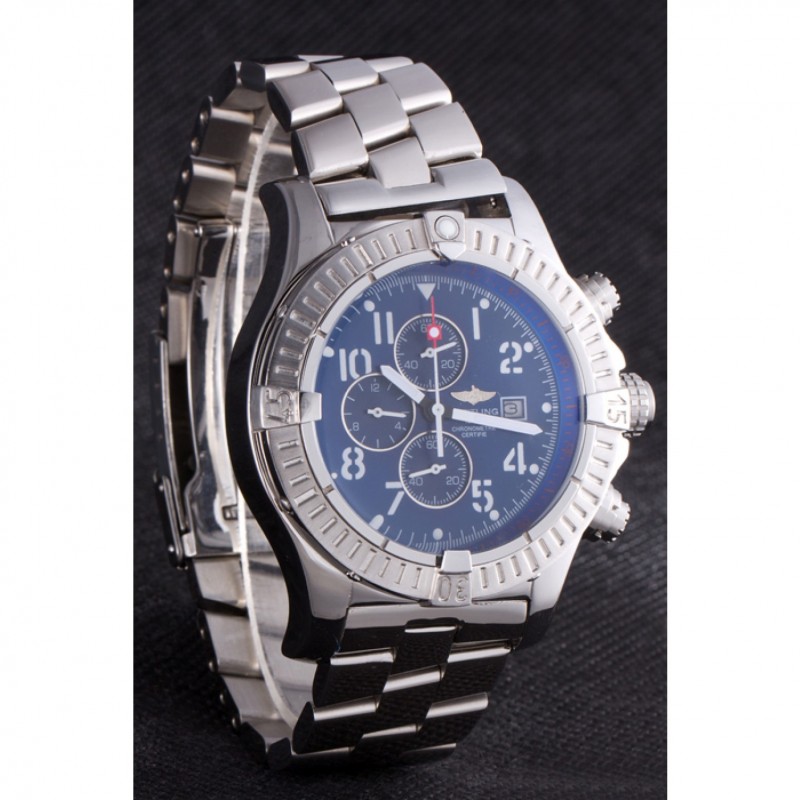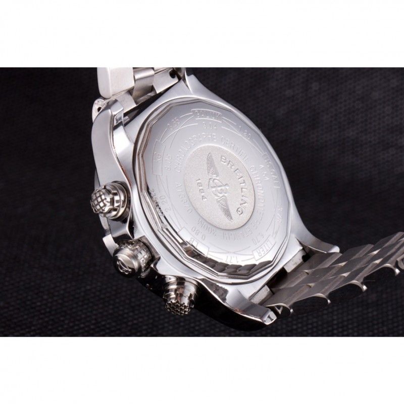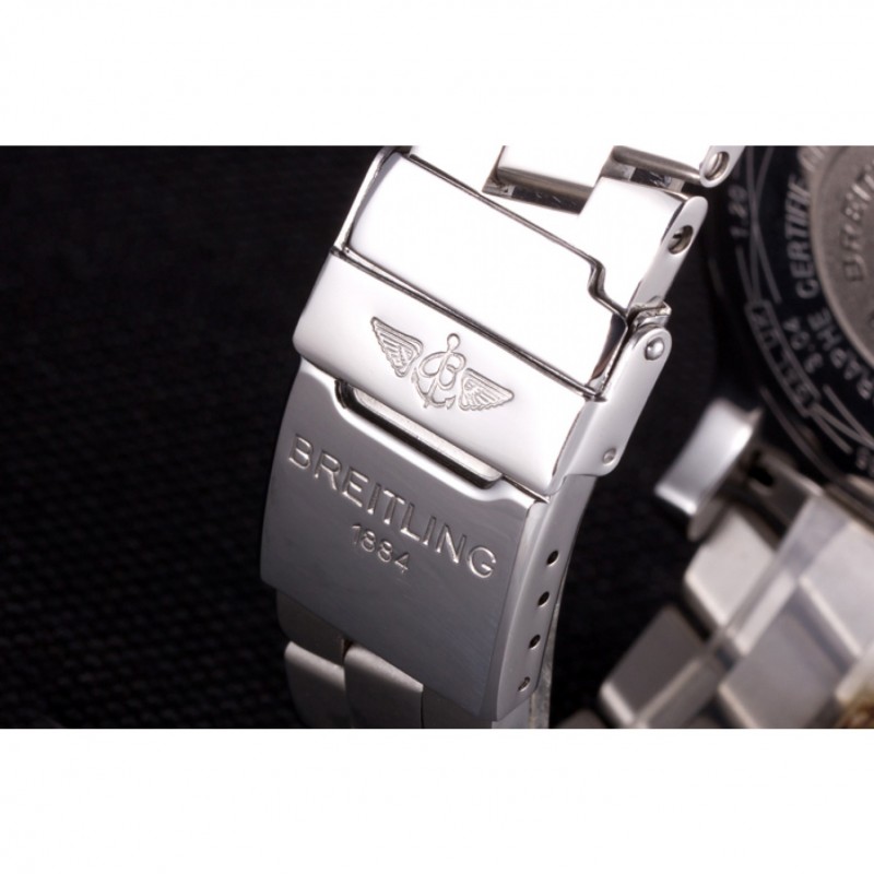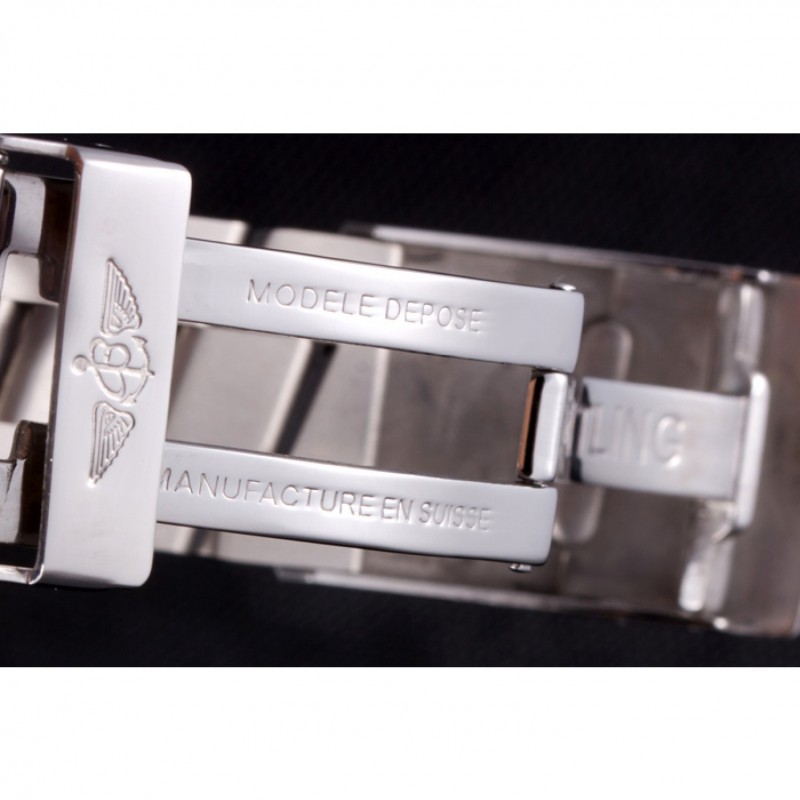 Bracelet:.solide 440-qualité des maillons en acier inoxydable poli à une grande lueur, attaché avec une fermeture à boucle en acier gravé avec le nom Breitling et logo