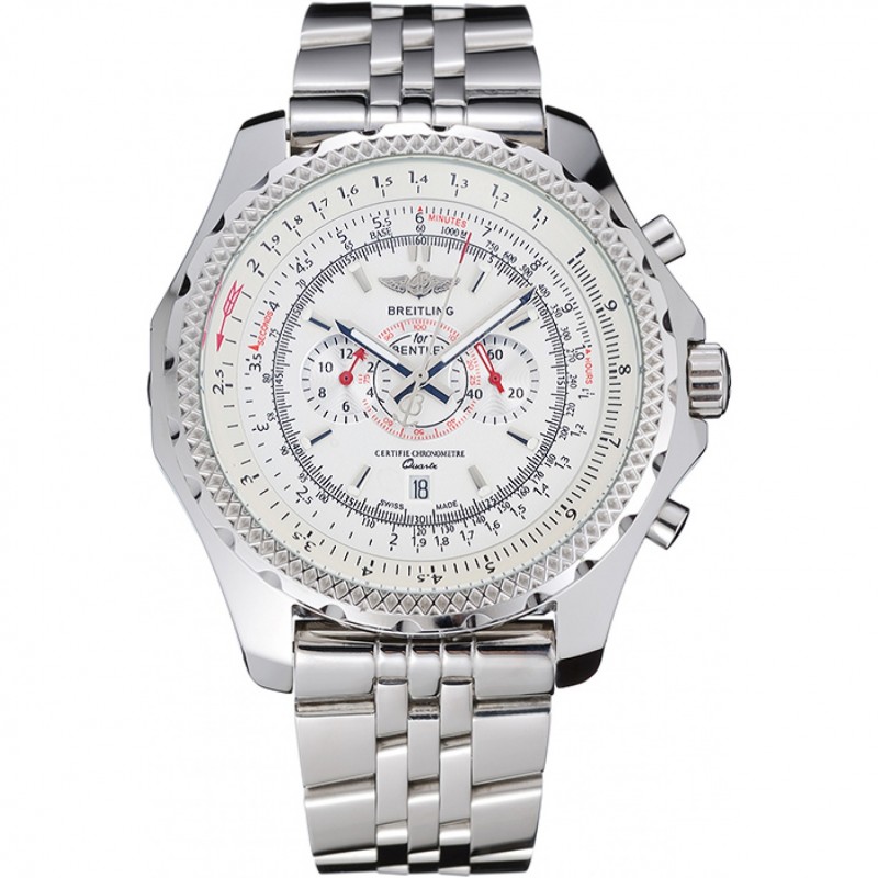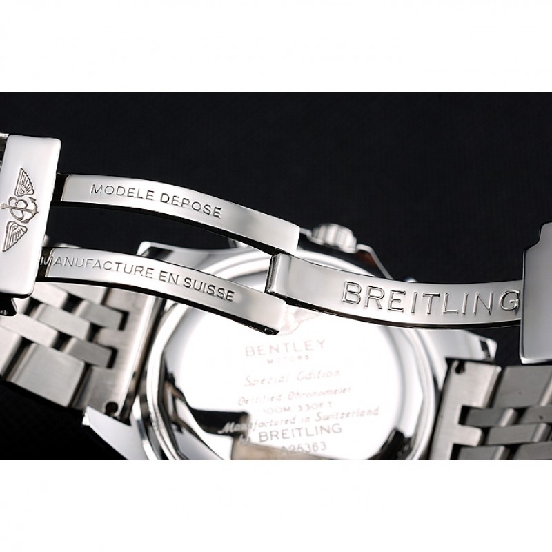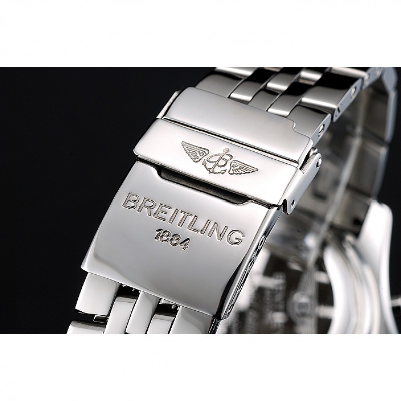 Bracelet:bracelet en acier inoxydable poli finement lié avec le code de date et Breitling gravé bouton poussoir à déclenchement plier en boucle