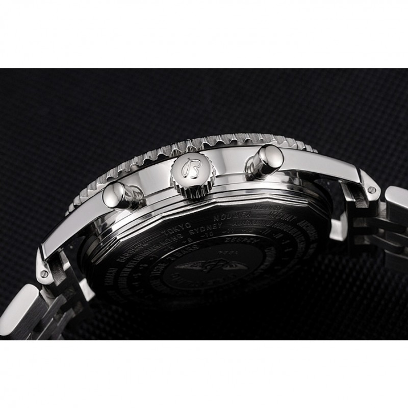Couronne:couronne en acier inoxydable cutwork poli avec le logo Breitling et une petite couronne bouton-poussoir de chaque côté de celui-ci