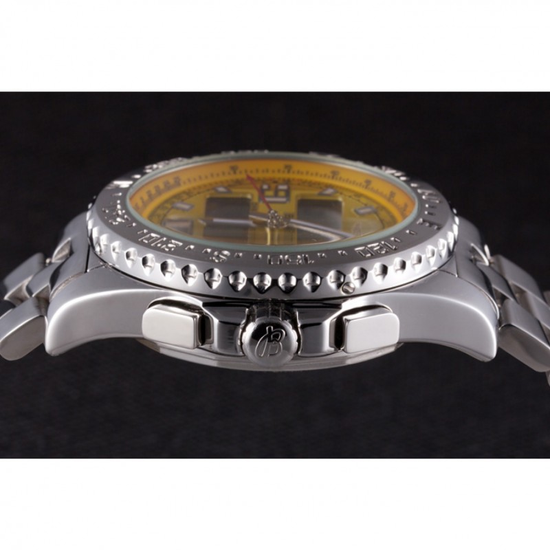 Couronne:couronne en acier inoxydable cutwork poli avec le logo Breitling et deux couronnes à bouton-poussoir de chaque côté de celui-ci