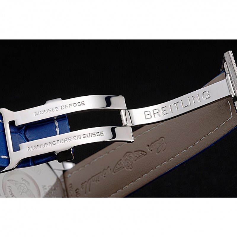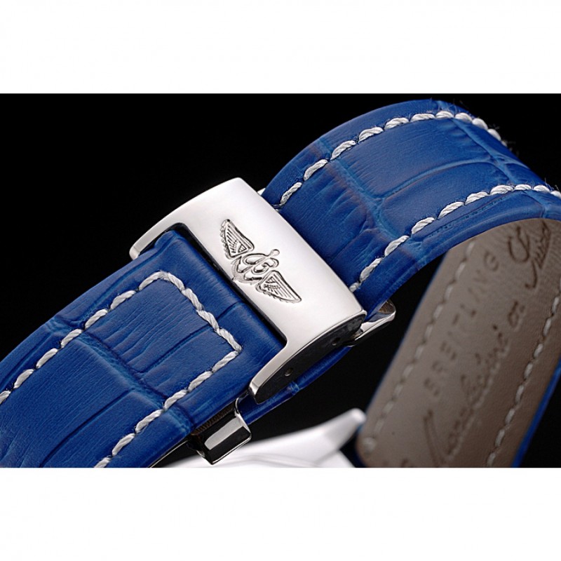 Bracelet:cuir Veritable et logo chaleur en relief crocodile bleu bracelet en cuir avec le logo Breitling acier inoxydable poli gravé fois en boucle