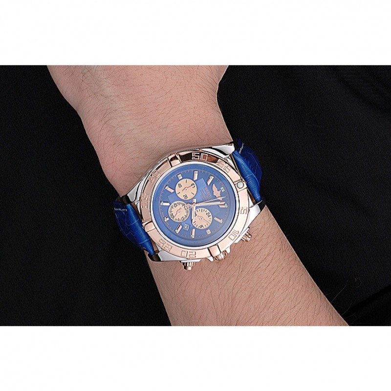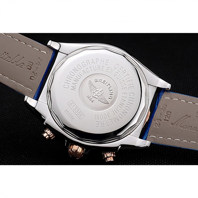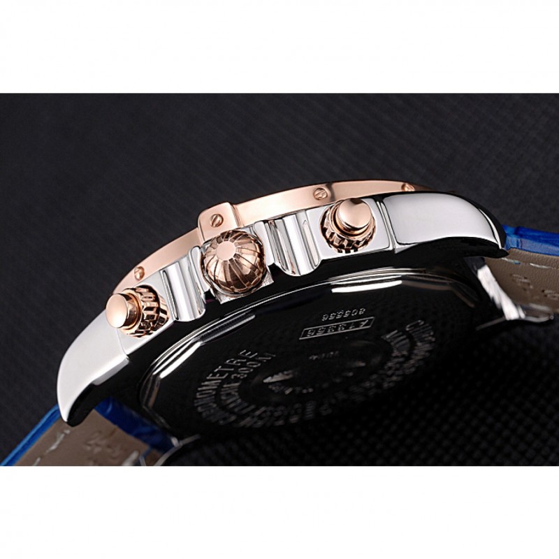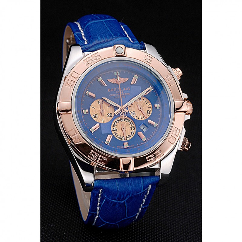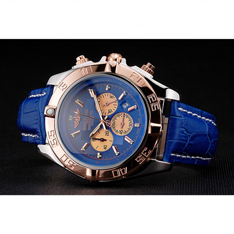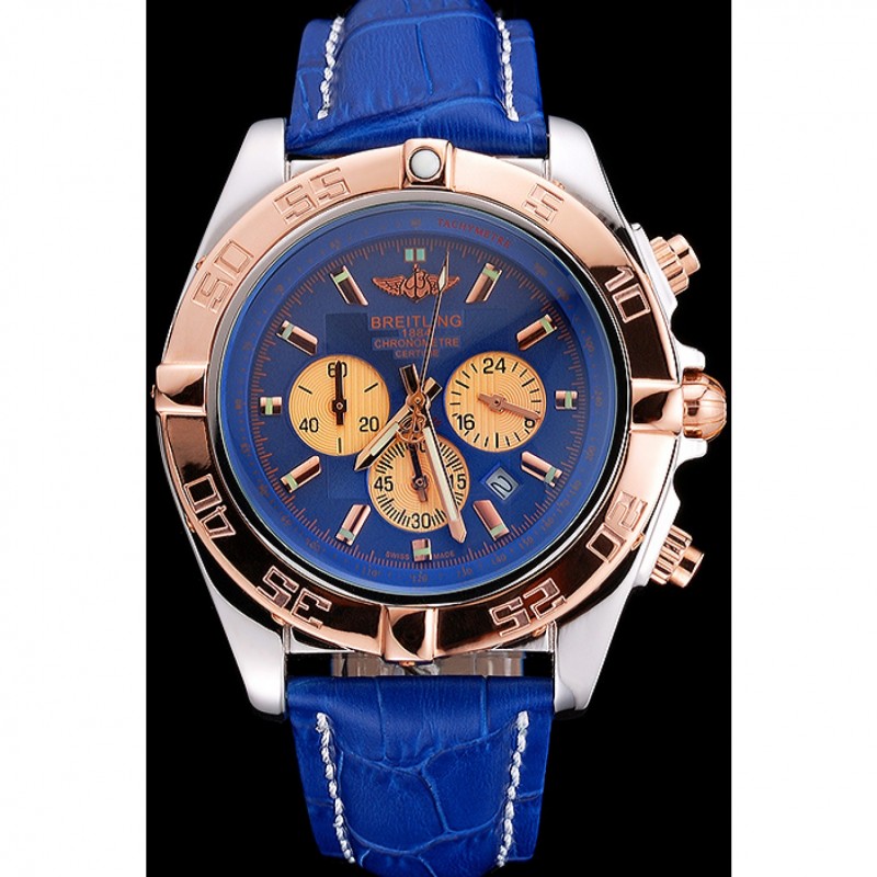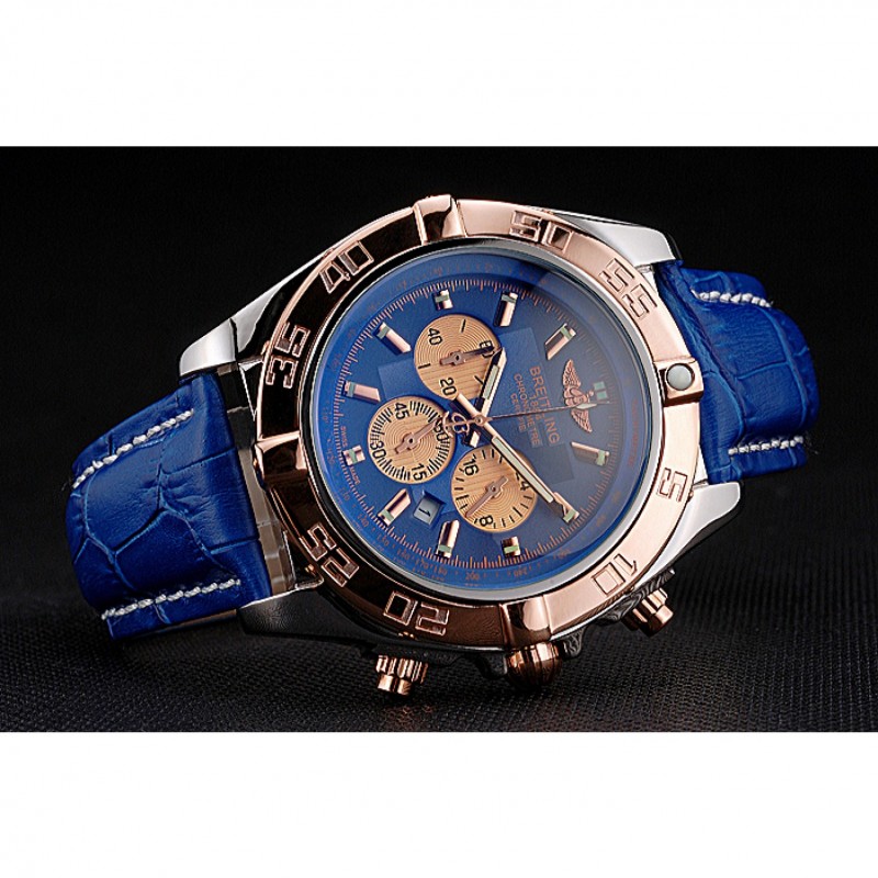 Breitling Chronomat cadran bleu or rose lunette et boîtier en acier inoxydable Subdials Bleu Bracelet en cuir