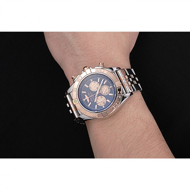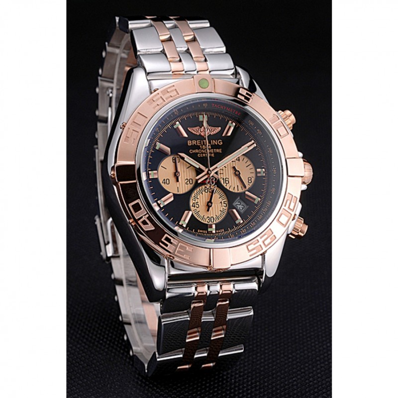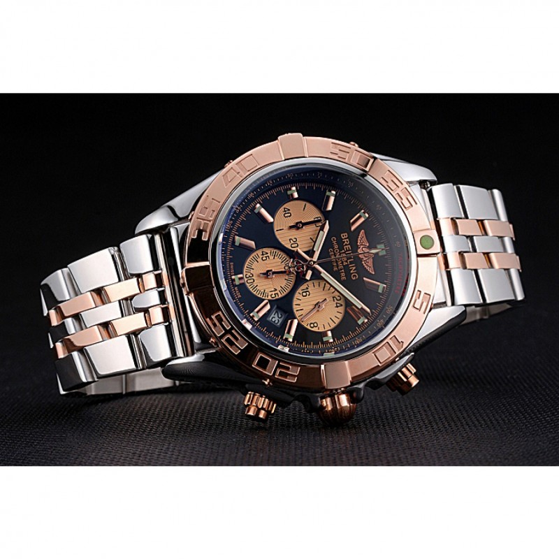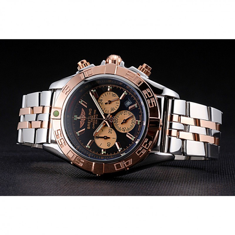 Breitling Chronomat cadran noir or rose lunette et Subdials Boîtier en acier Bracelet Deux Tone