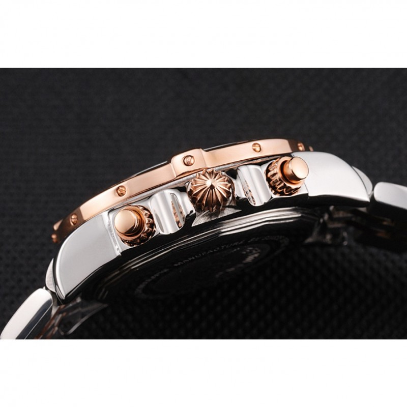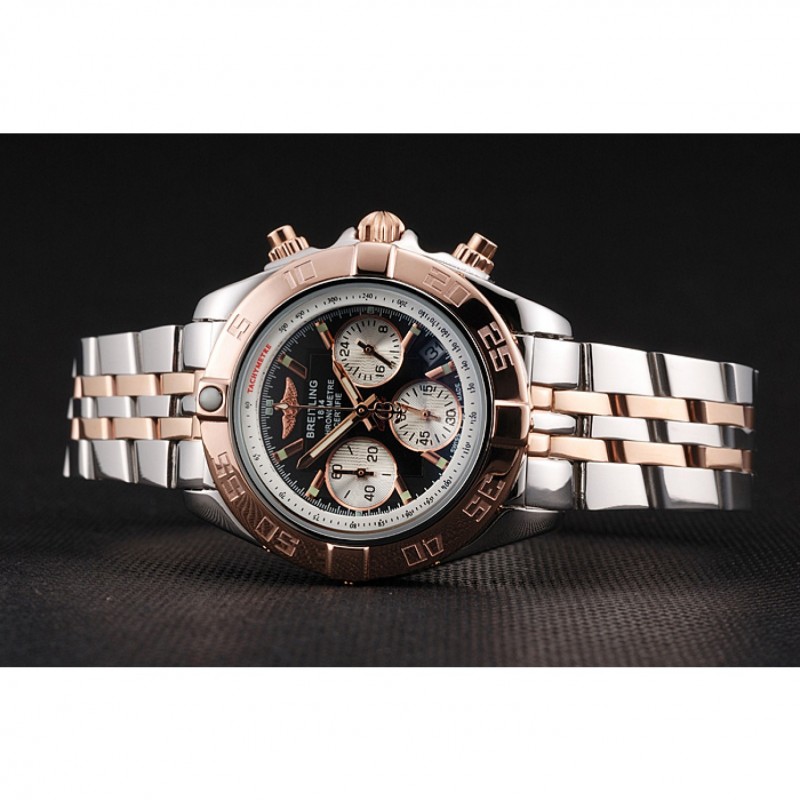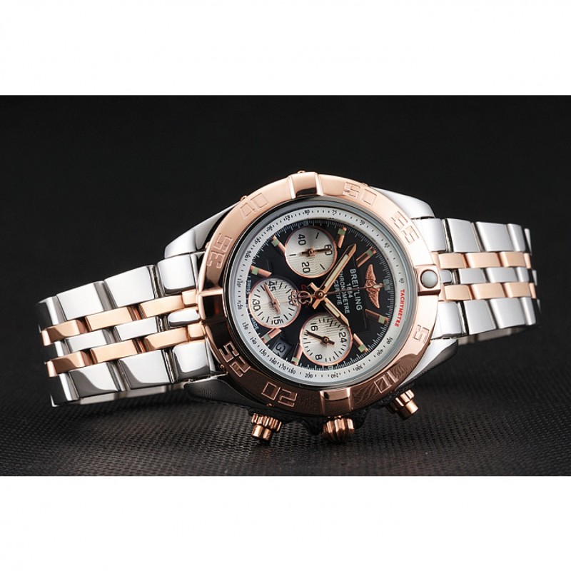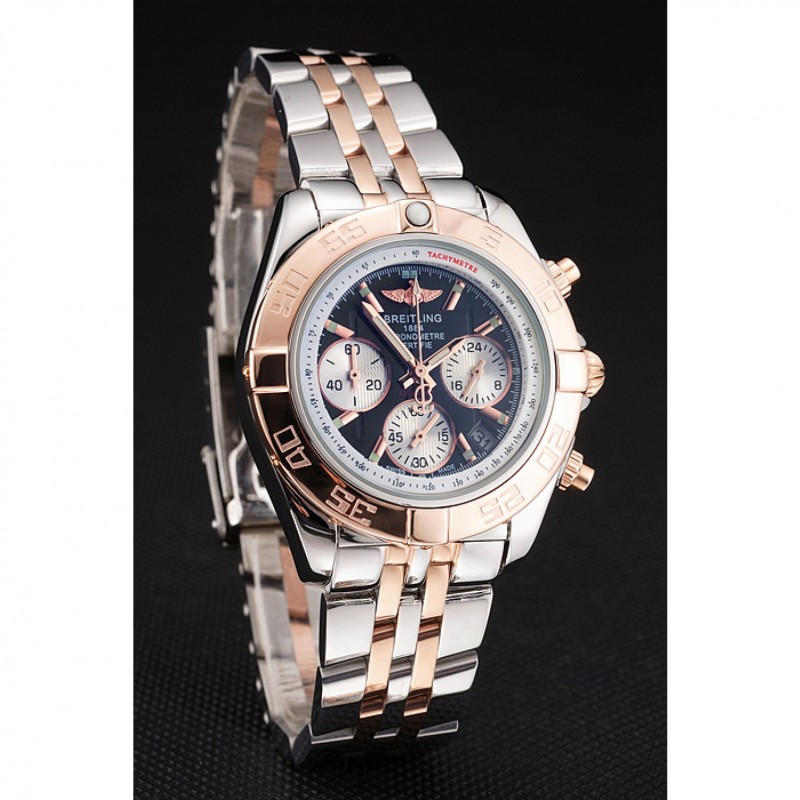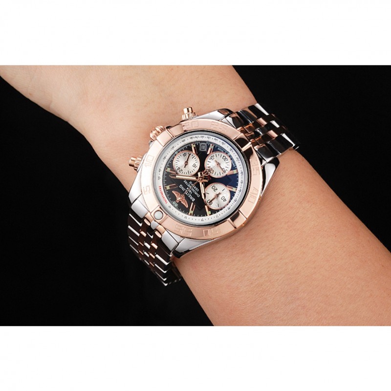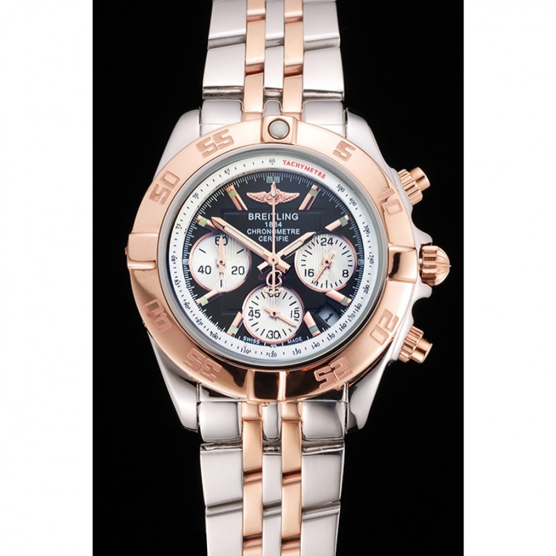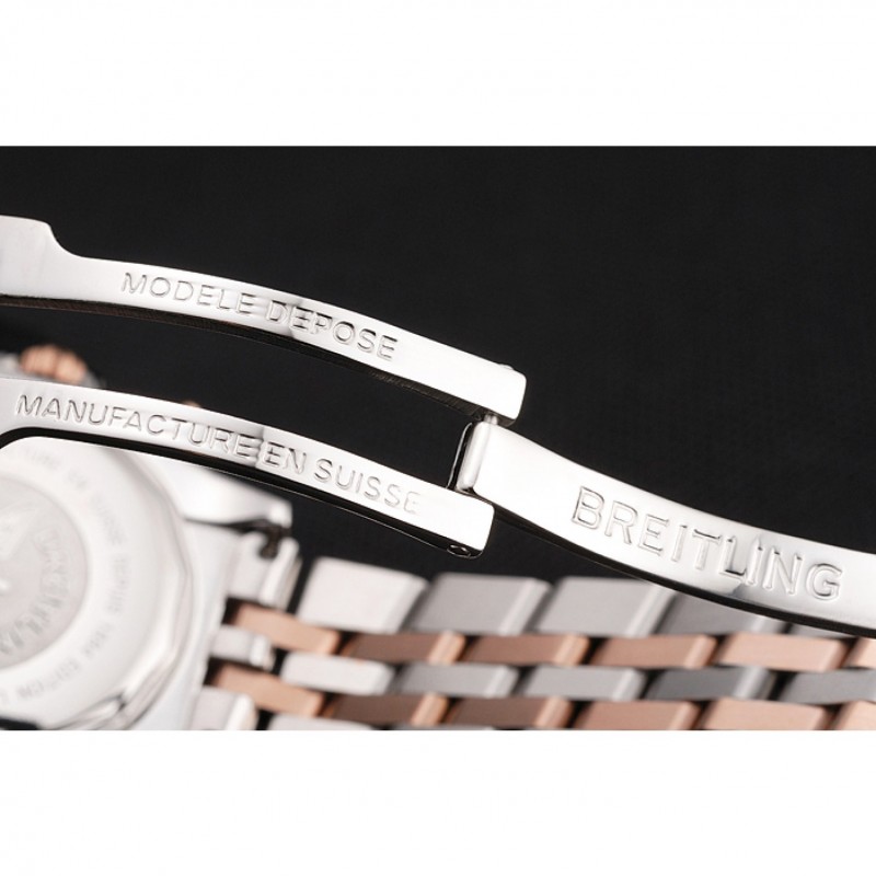 bracelet:18k or rose plaqué et bracelet à maillons en acier inoxydable poli avec Breitling 1884 gravé et logo gravé boucle déployante en acier inoxydable poli