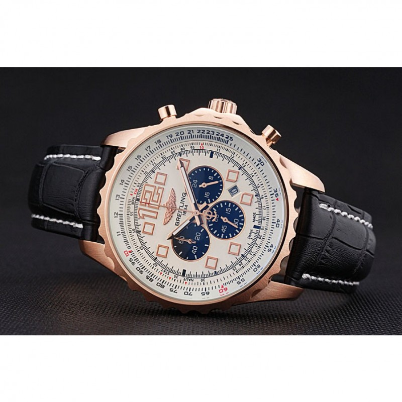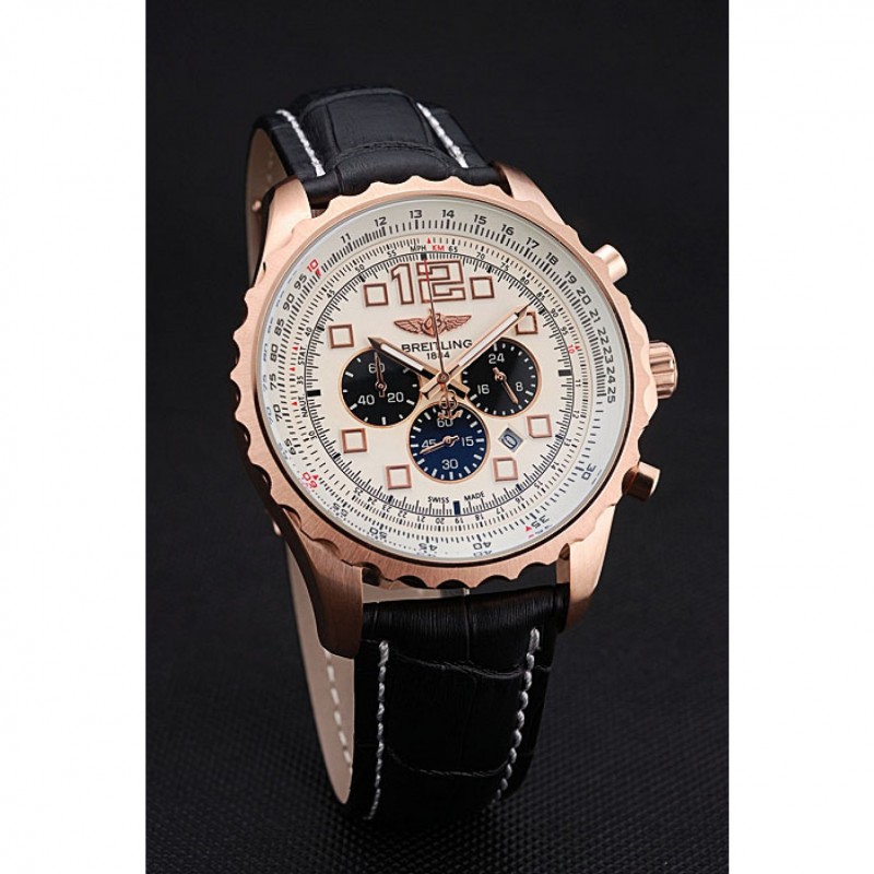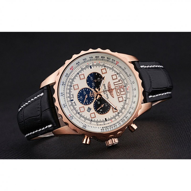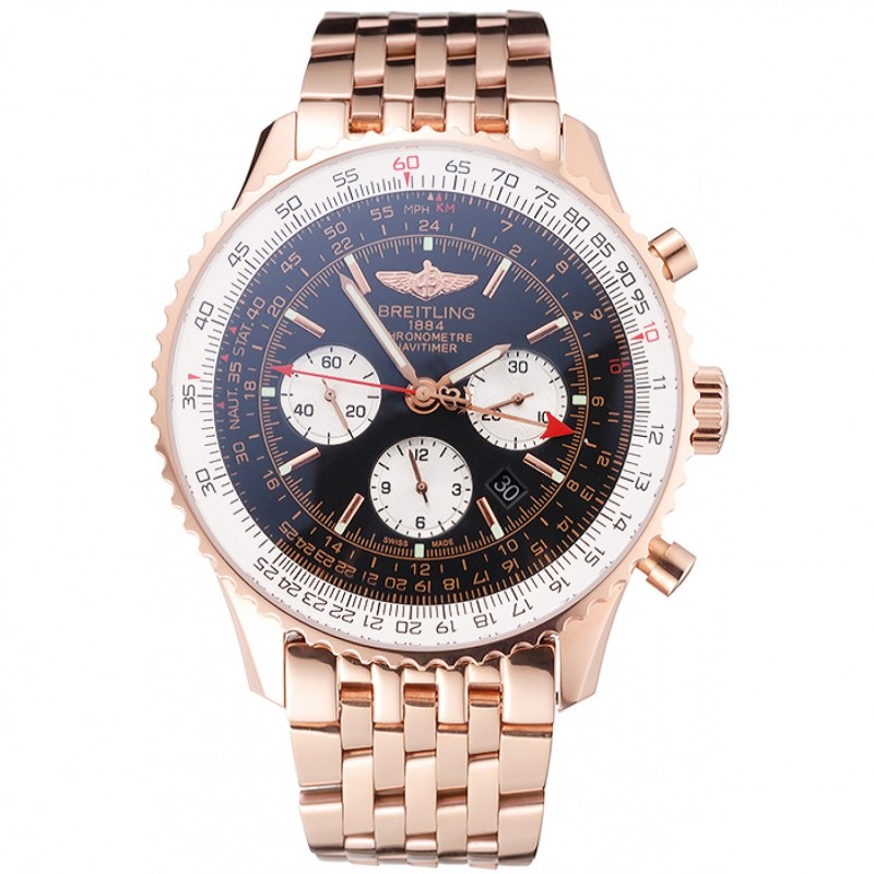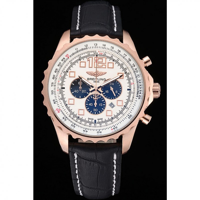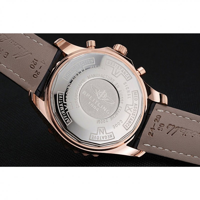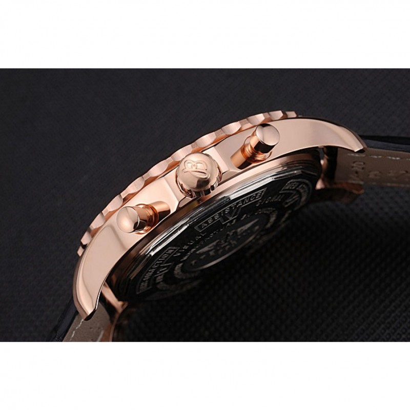 Couronne:18k or rose plaqué couronne cutwork avec le logo Breitling et deux petites couronnes push-bouton en acier inoxydable de chaque côté de celui-ci