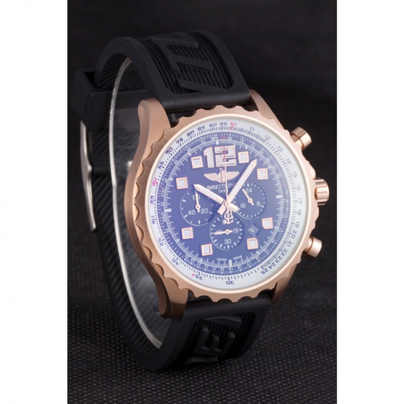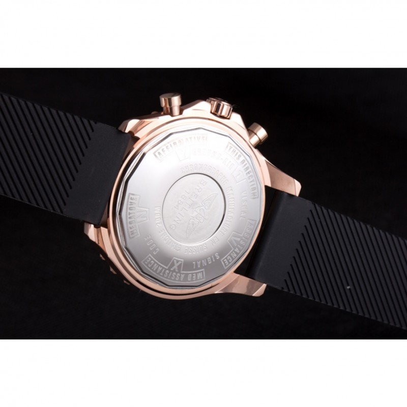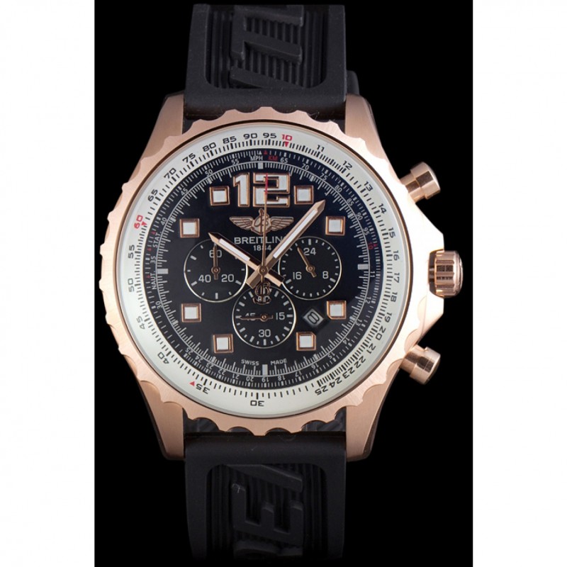 Couronne:18k or rose plaqué couronne cutwork avec le logo Breitling et deux petites couronnes push-bouton en acier inoxydable de chaque côté de celui-ci