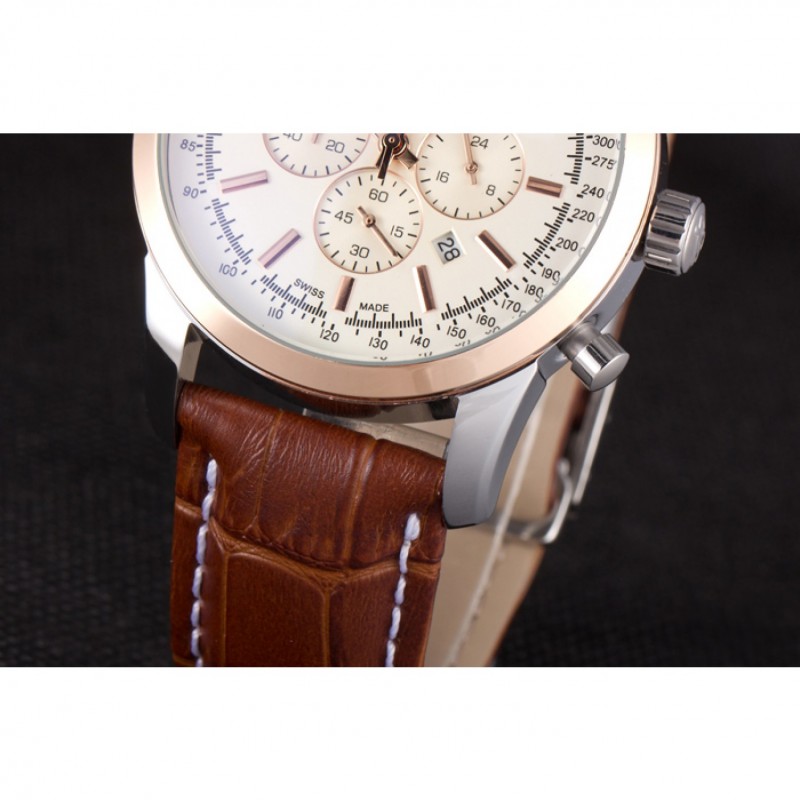 1 avis pour Breitling Transocean cadran blanc bracelet en cuir brun clair or rose Bezel