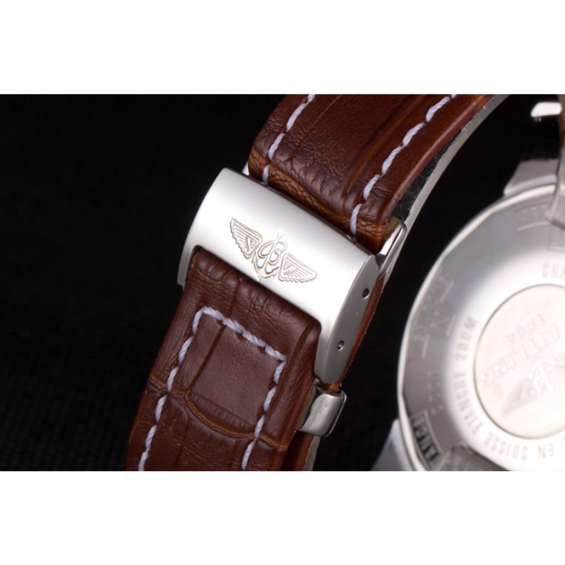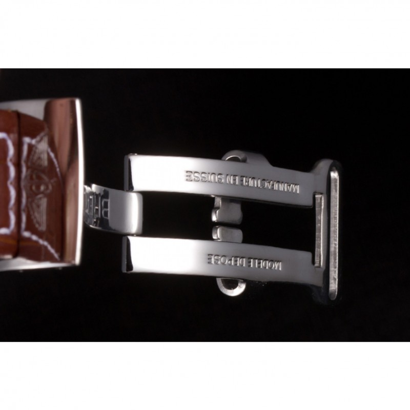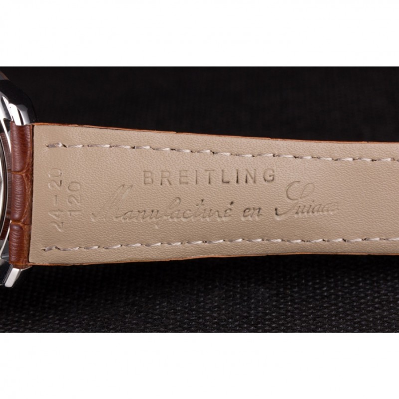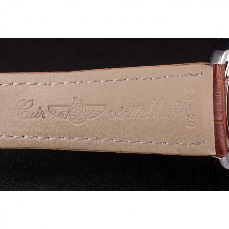 Bracelet:Heat gaufrée bracelet en cuir de crocodile brun Breitling avec coutures fil blanc et un logo Breitling gravée pli en boucle en acier inoxydable