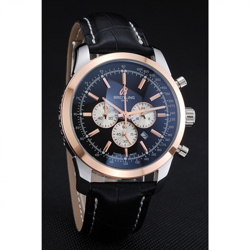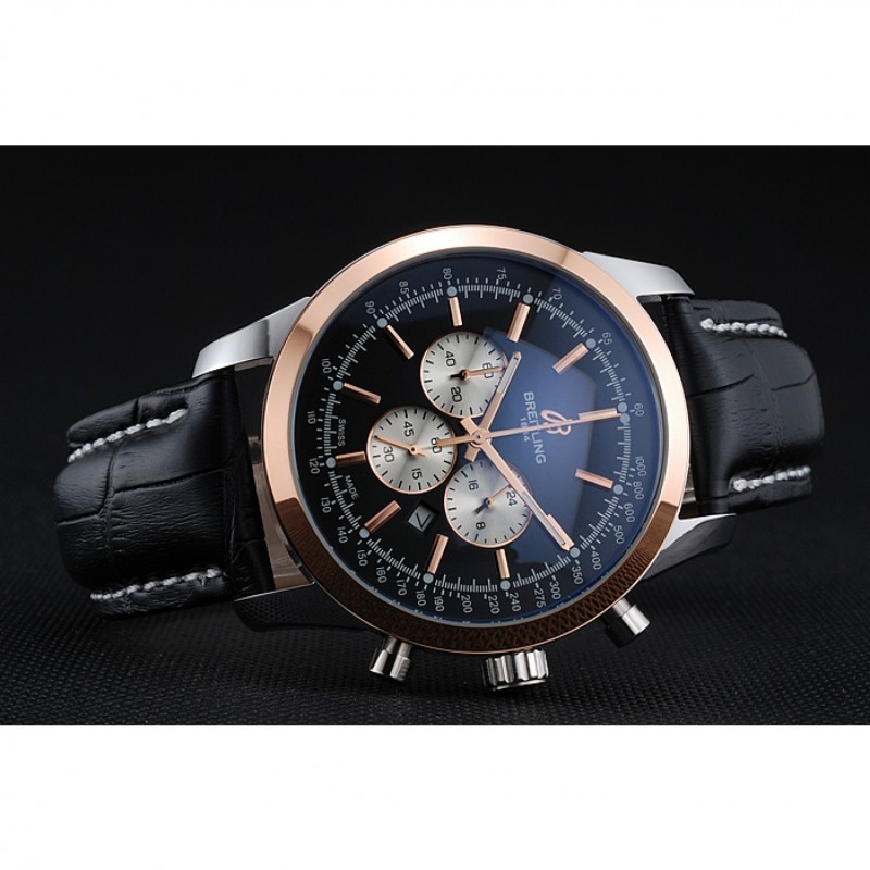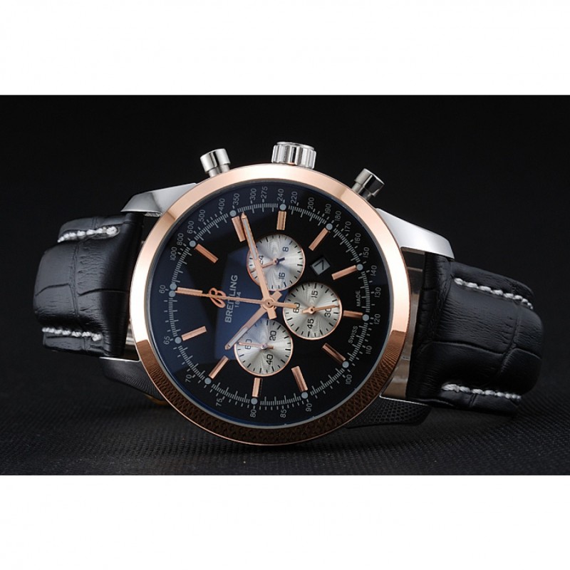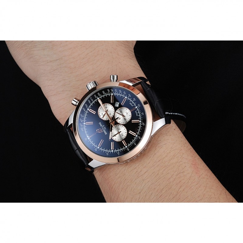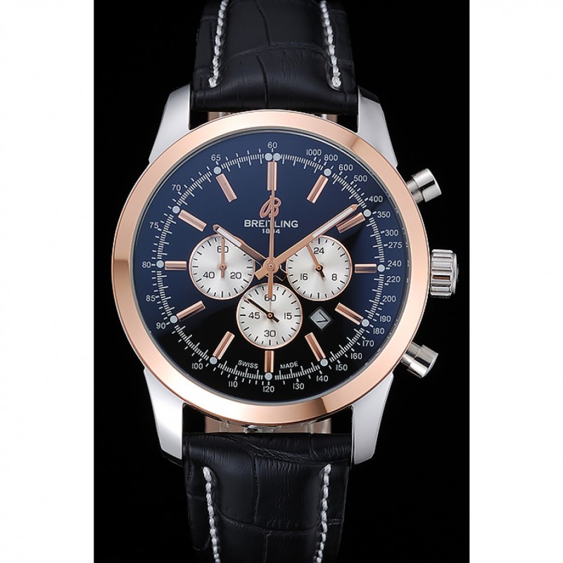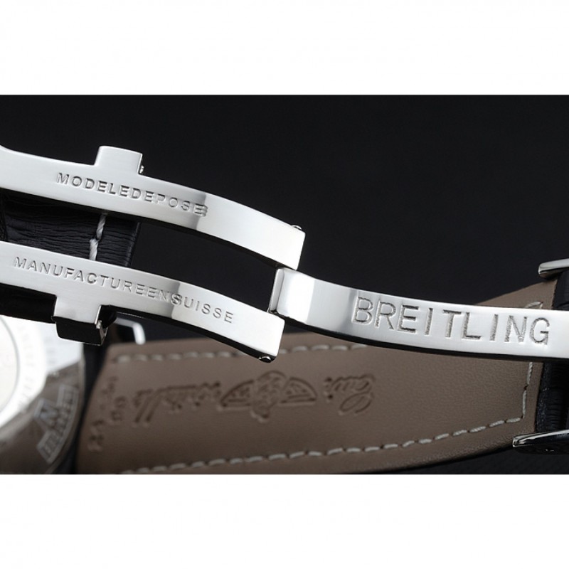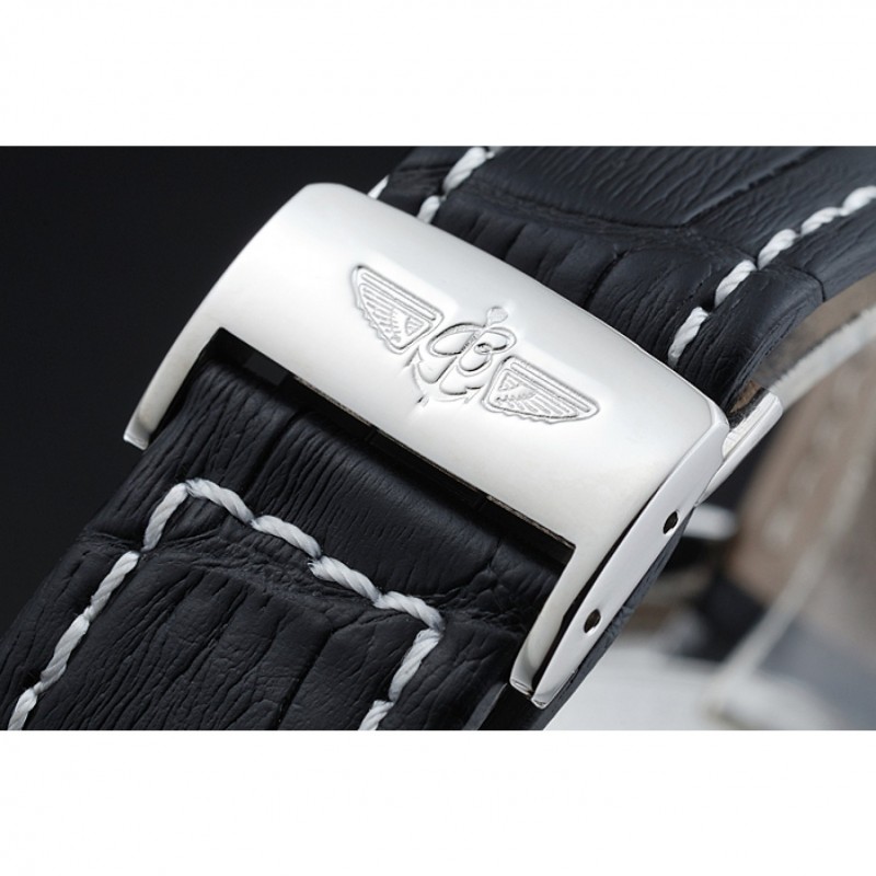 Bracelet:Heat gaufrée bracelet en cuir crocodile noir Breitling avec coutures fil blanc et un logo Breitling gravée pli en boucle en acier inoxydable