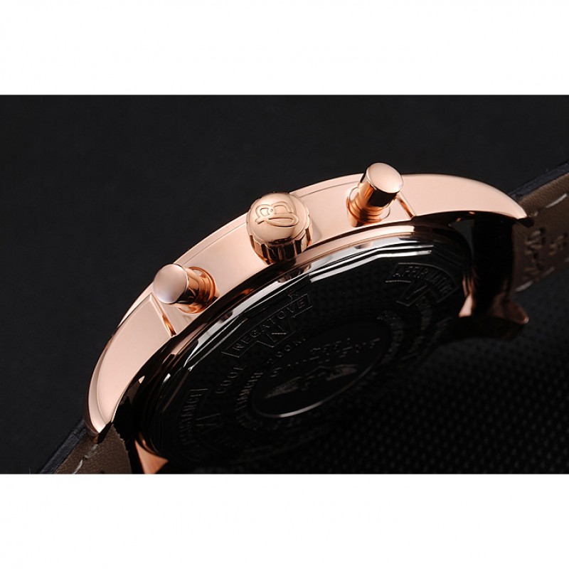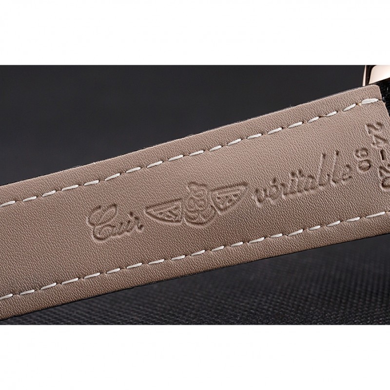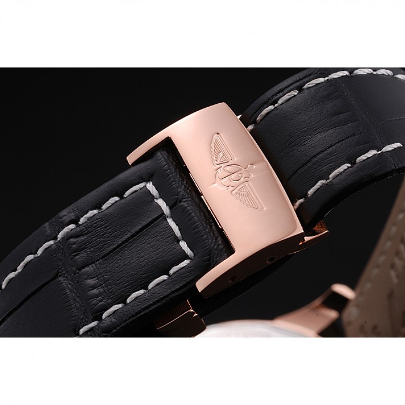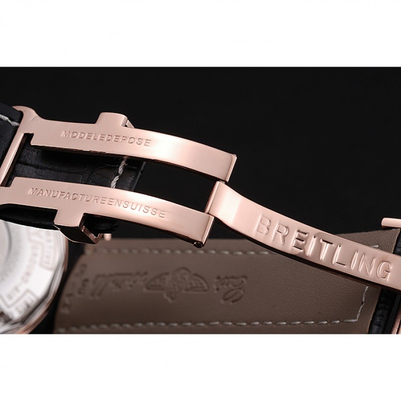 Bracelet :Heat gaufrée bracelet en cuir crocodile noir Breitling avec coutures fil blanc et un logo Breitling gravée pli dans fermoir plaqué or rose