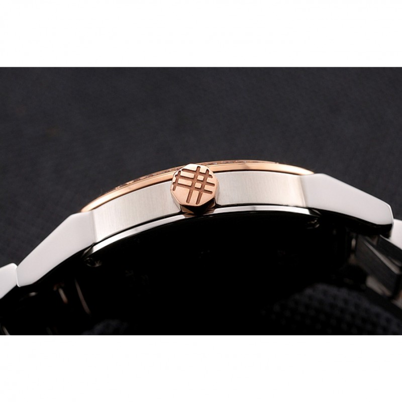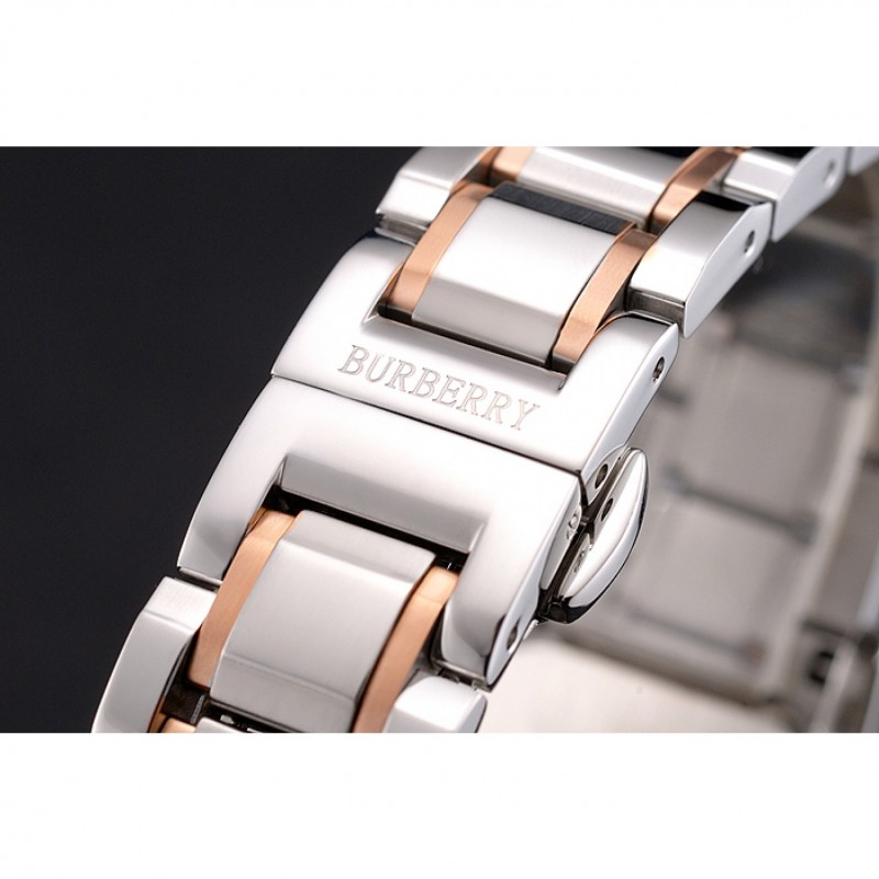 bracelet:en acier inoxydable poli et 18k or rose plaqué bracelet lien avec Burberry inscrit fermoir à bouton-presse