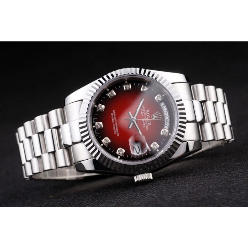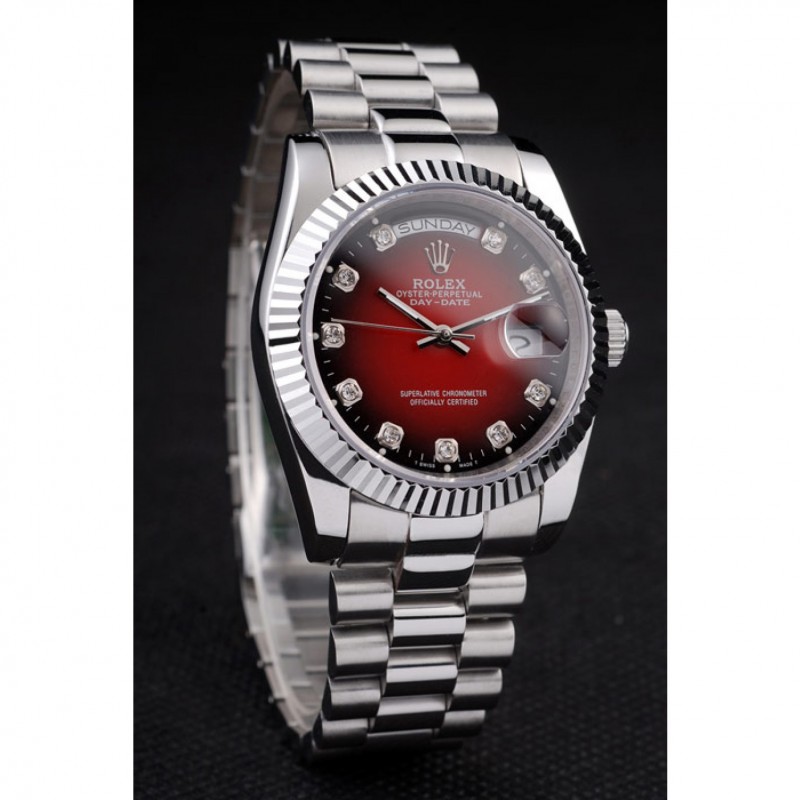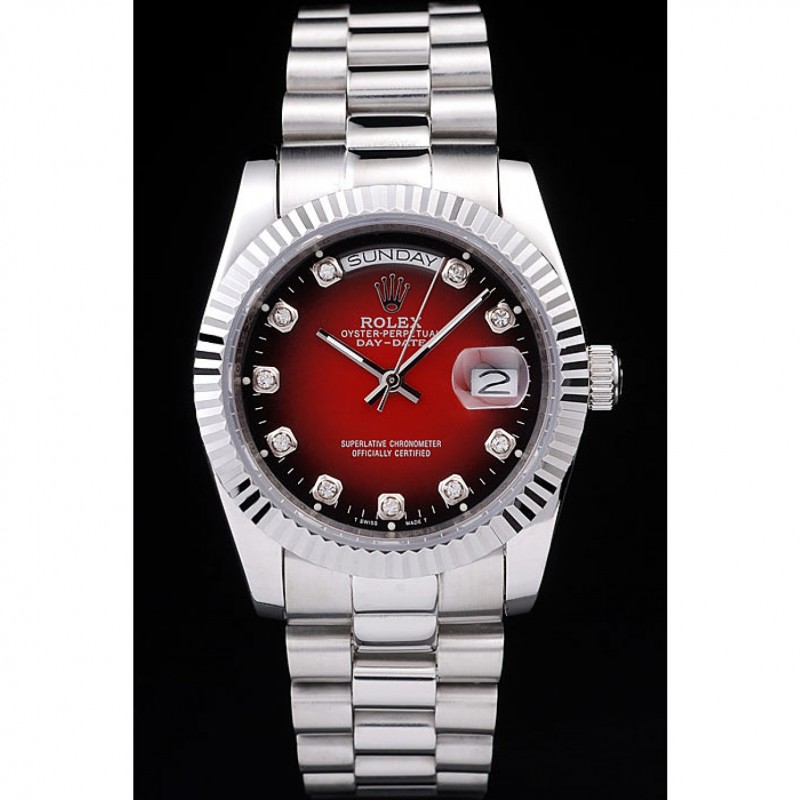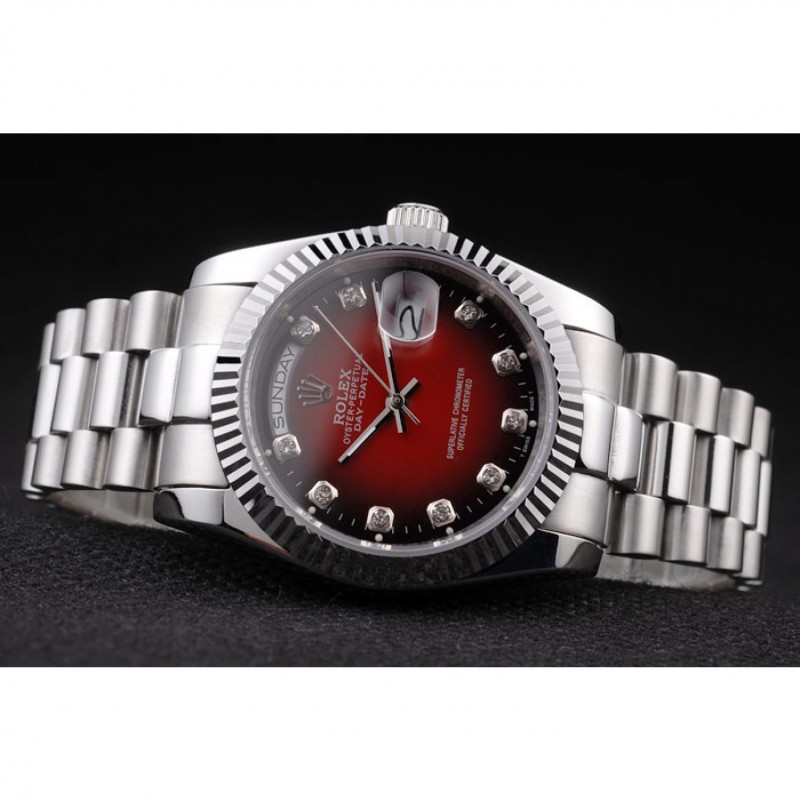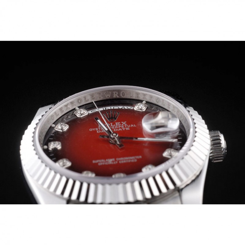 Day-Date Rolex en acier inoxydable poli à deux tons cadran rouge