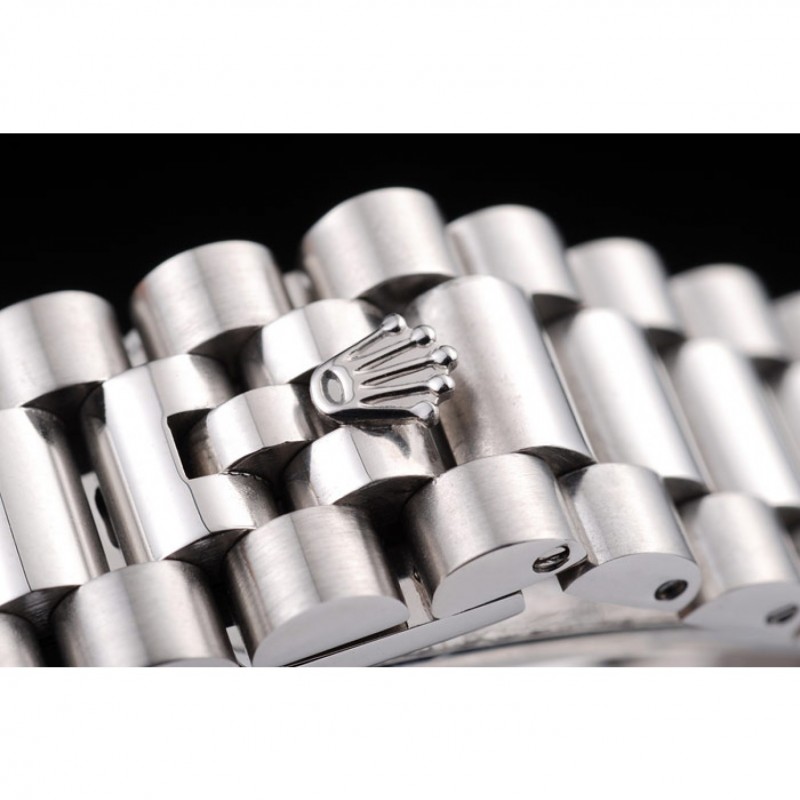 bracelet:bracelet à maillons en acier inoxydable brossé avec Rolex gravé caché fermoir affichant le logo Rolex